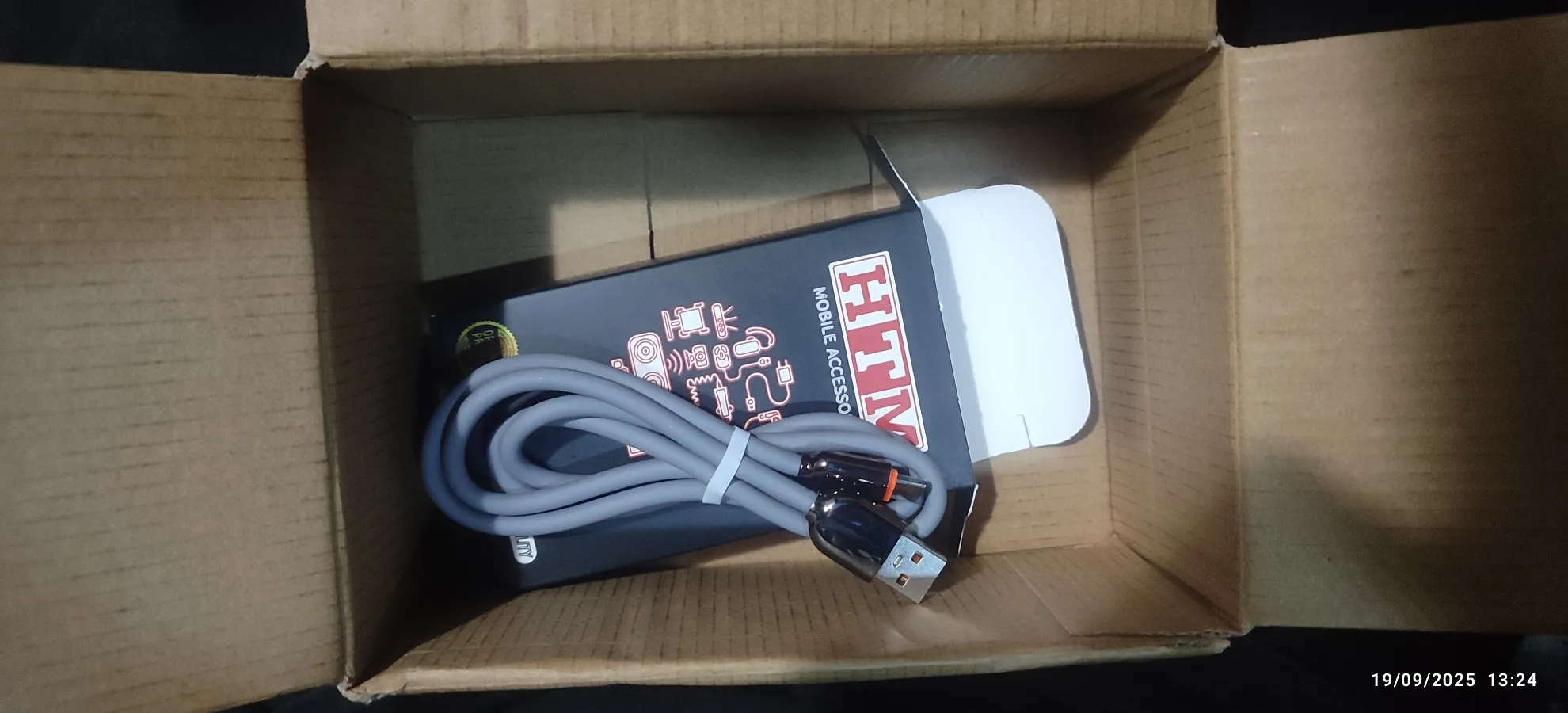 کابل مربوطه ، درون جعبه و کاور خودش نبود . مطابق تصویر ارسالی ، درون کیسه پلاستیکی زیپ دار طلایی بود .