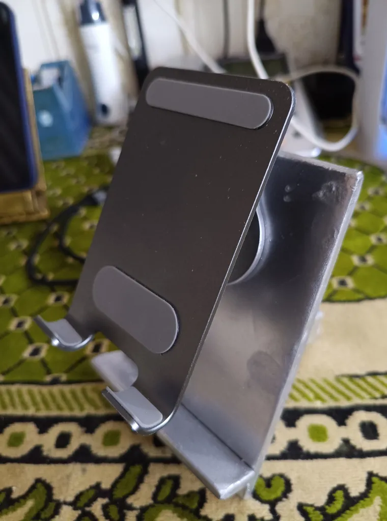 - ⬤ پایههای نگهدارنده با قابلیت ضد لغزش : این نوع پایهها معمولاً دارای نوارهای ضد لغزش در قسمت زیرین هستند که از سرخوردن پایه بر روی سطوح مختلف جلوگیری میکند. خریداران به این ویژگی به عنوان یک مزیت بزرگ اشاره کردهاند، زیرا این امکان را به آنها میدهد که از دستگاه خود با اطمینان بیشتری استفاده کنند. اما برخی کاربران به عدم کارایی این نوارها در برخی سطوح انتقاد کردهاند و این موضوع میتواند باعث نگرانی در استفاده از دستگاههای سنگین شود.