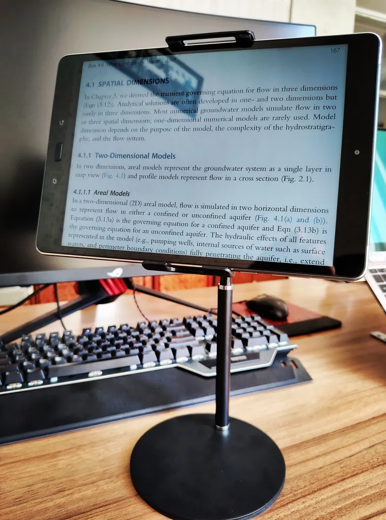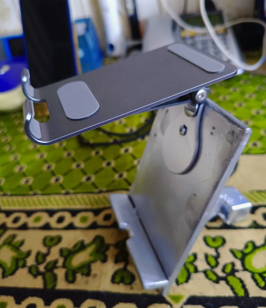 - ⬤ قابلیت تنظیم ارتفاع و زاویه : یکی از ویژگیهای مورد پسند خریداران، قابلیت تنظیم ارتفاع و زاویه پایه است. این امکان به کاربران اجازه میدهد تا ارتفاع و زاویه را بر اساس نیاز خود تنظیم کنند و از خستگی گردن و کمر جلوگیری کنند. پایههایی که این قابلیت را دارند، معمولاً محبوبتر هستند و تجربه کاربری بهتری را فراهم میکنند.