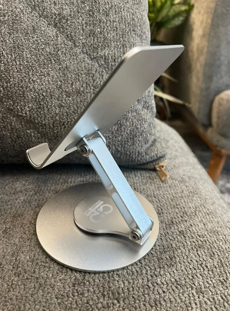 - ⬤ پایههای نگهدارنده با قابلیت چرخش : این پایهها به گونهای طراحی شدهاند که میتوانند به راحتی در زوایای مختلف بچرخند. خریداران به این ویژگی به عنوان یک مزیت بزرگ اشاره کردهاند، زیرا این امکان را به آنها میدهد که در هر زاویهای که میخواهند از دستگاه خود استفاده کنند. با این حال، برخی کاربران به عدم پایداری در حالت چرخش انتقاد کردهاند و این موضوع میتواند باعث نگرانی در استفاده از دستگاههای سنگین شود. همچنین، برخی از آنها به لرزش پایه در هنگام تایپ کردن اشاره کردهاند که میتواند تجربه کاربری را تحت تأثیر قرار دهد.