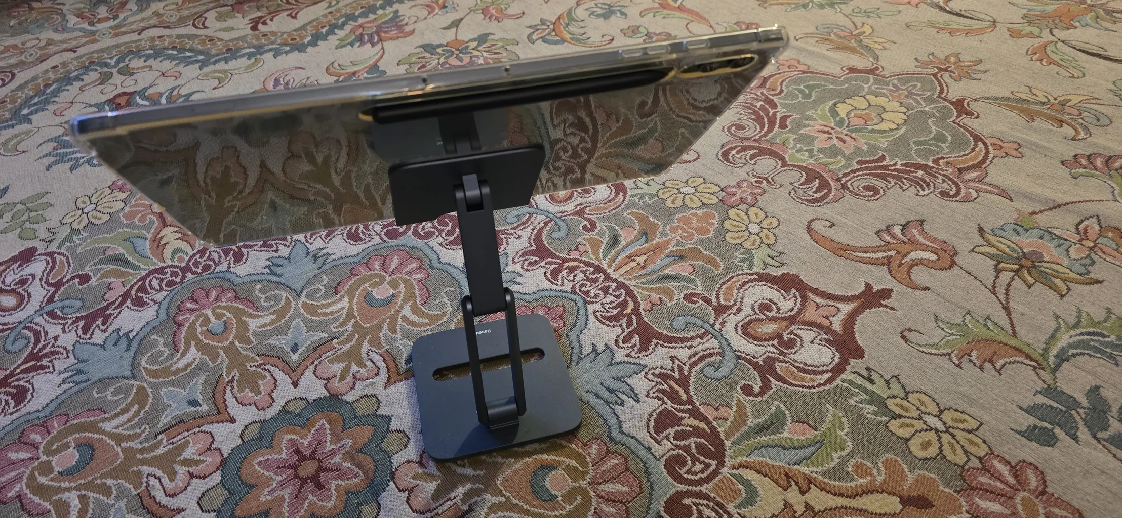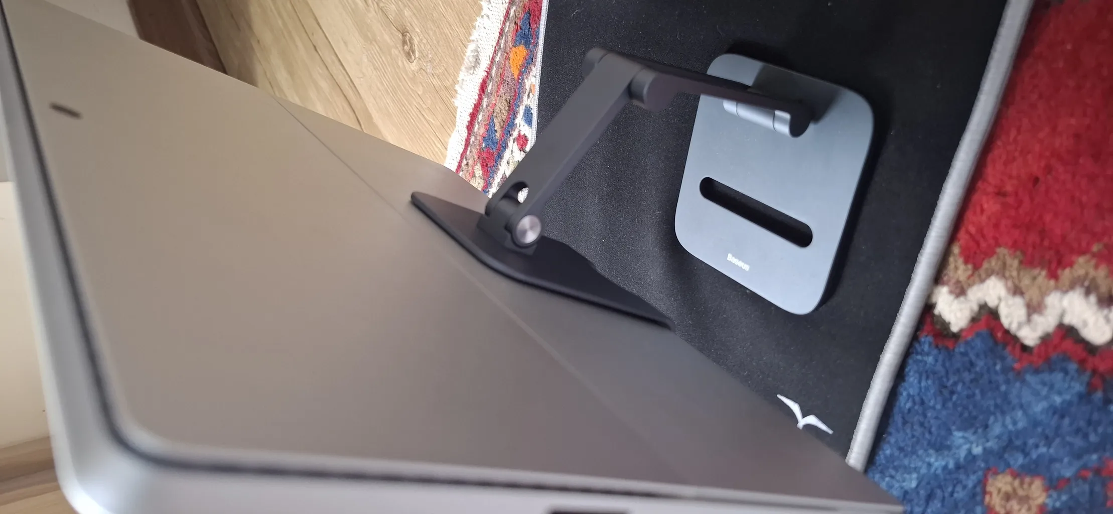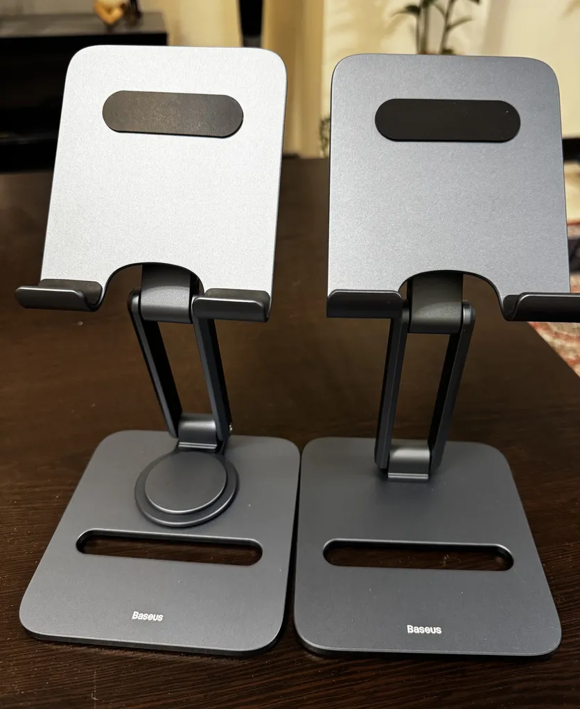 - ⬤ پایههای نگهدارنده با قابلیت چرخش : این پایهها به گونهای طراحی شدهاند که میتوانند به راحتی در زوایای مختلف بچرخند. خریداران به این ویژگی به عنوان یک مزیت بزرگ اشاره کردهاند، زیرا این امکان را به آنها میدهد که در هر زاویهای که میخواهند از دستگاه خود استفاده کنند. با این حال، برخی کاربران به عدم پایداری در حالت چرخش انتقاد کردهاند و این موضوع میتواند باعث نگرانی در استفاده از دستگاههای سنگین شود. همچنین، برخی از آنها به لرزش پایه در هنگام تایپ کردن اشاره کردهاند که میتواند تجربه کاربری را تحت تأثیر قرار دهد.