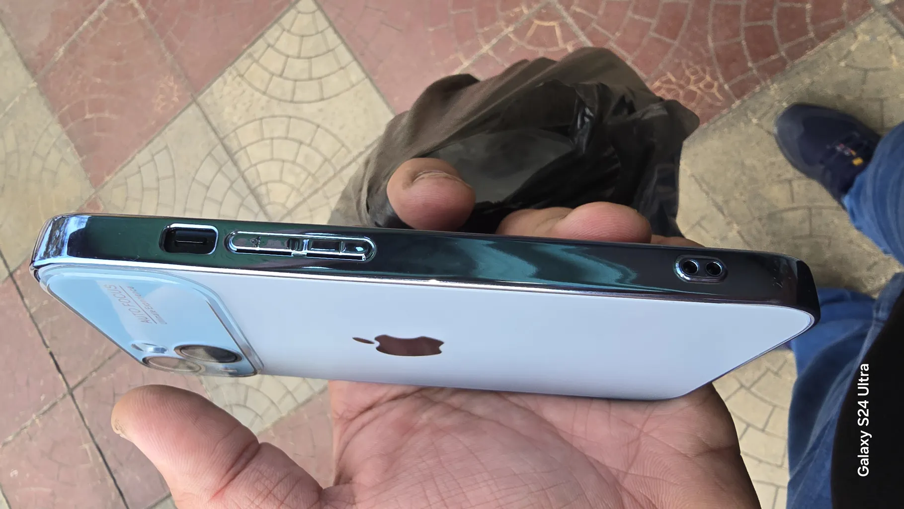 درون قاب یک پوشش براقه. فکر میکنم بهتره موقع شارژ شدن جوشی قاب و خارج کنید چون گرم میشه