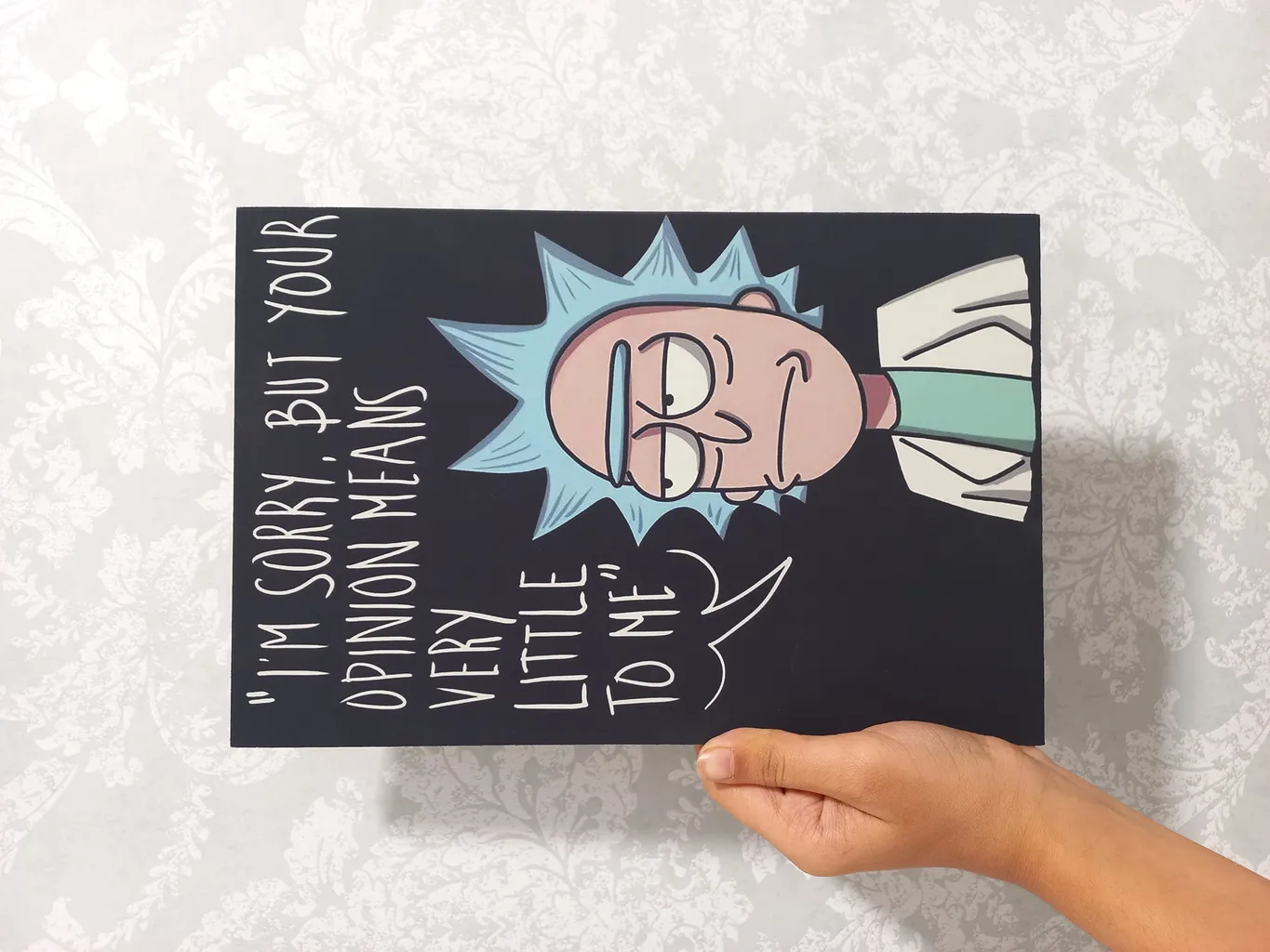 تابلو رو بخاطر قیافه ریک نگرفتیم بخاطر نوشته اش بود که اگر متفاوت باشه با چیزی که هست خب ارزش خودش رو از دست میده .
