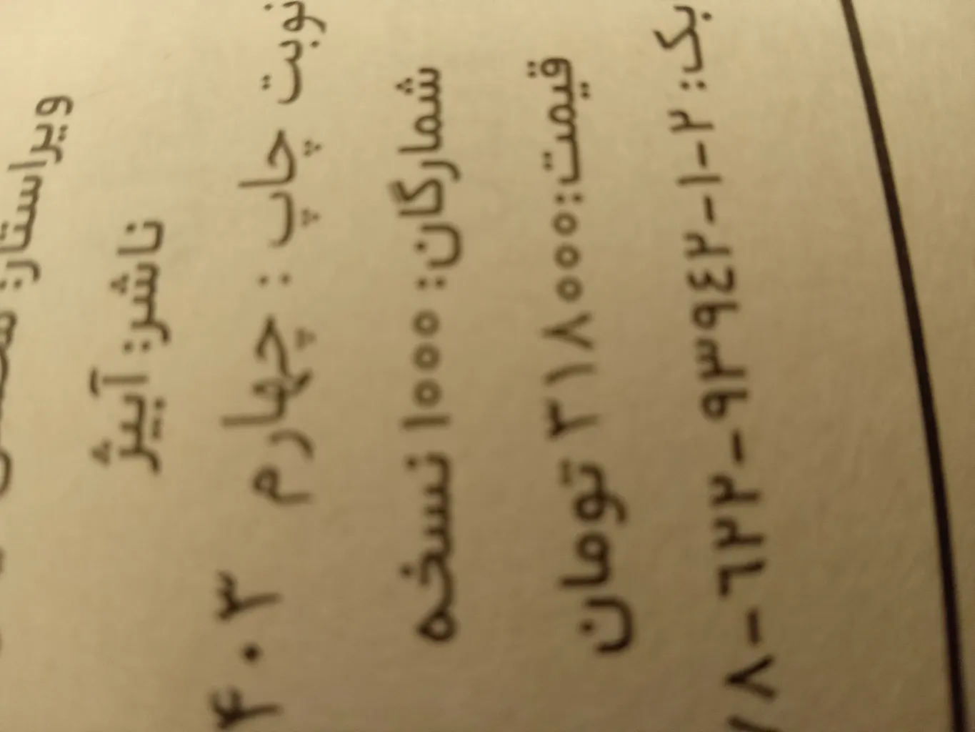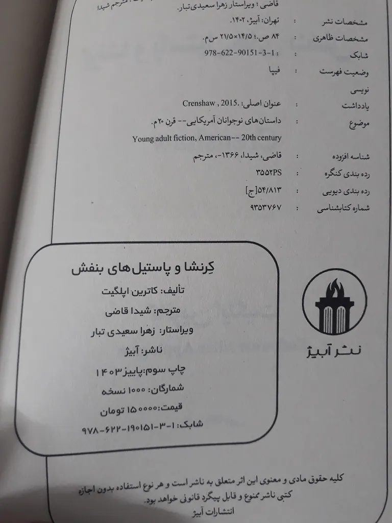 ولی کیفیت کتاب رو دوست نداشتم برگه های سبک و زرد رنگ و بی کیفیتی داره