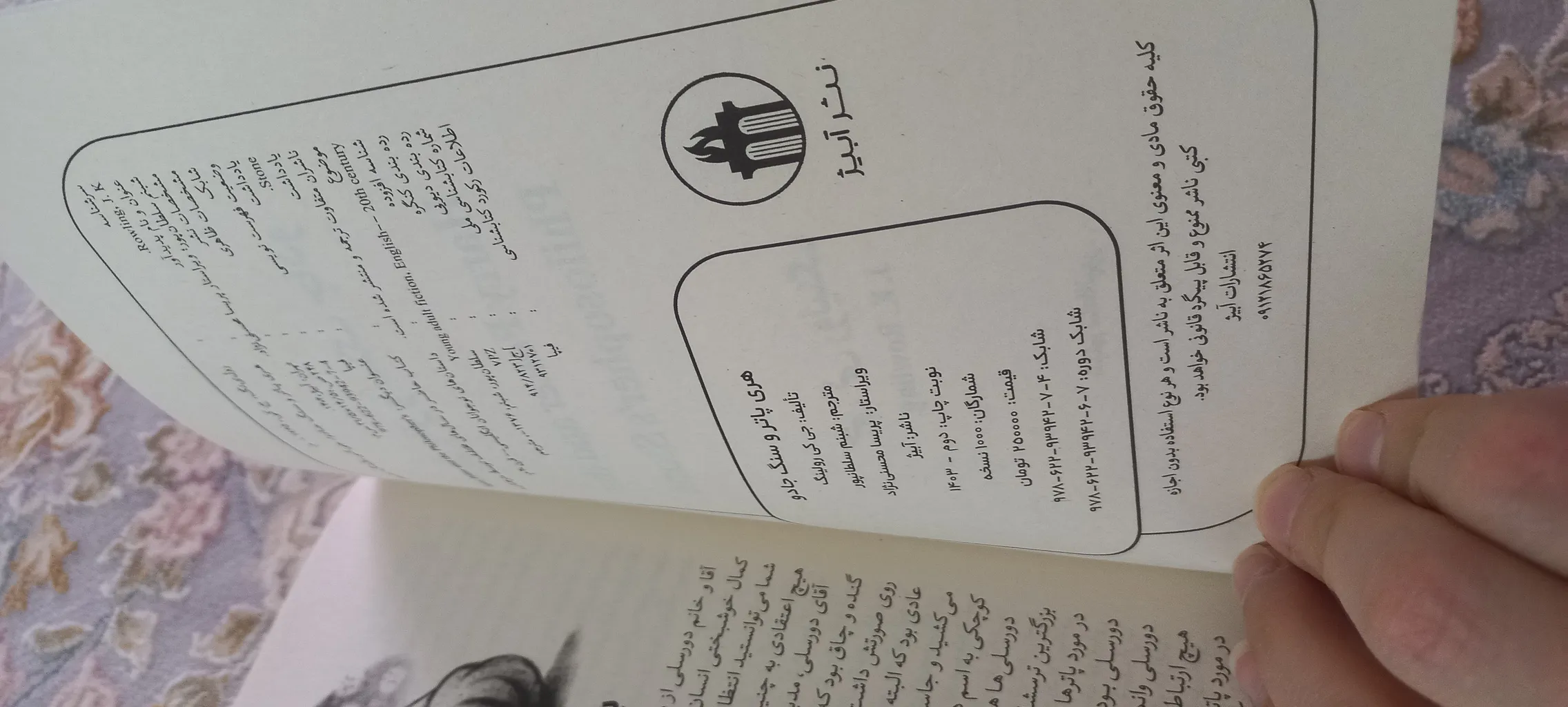 خریدار بدون نام : بالای یکی از صفحات کتاب یه مگس خشک شده بود و صحنه منزجر کننده ای بود واسه دخترم که داشت با ذوق فراوون هری پاتر میخوند. در حدی افتضاح بود که مجبور شدم اون قسمت رو قیچی کنم. آوم انتظار داره کتابی که وکیوم شده دستش میرسه همچین مشکلاتی نداشته باشه