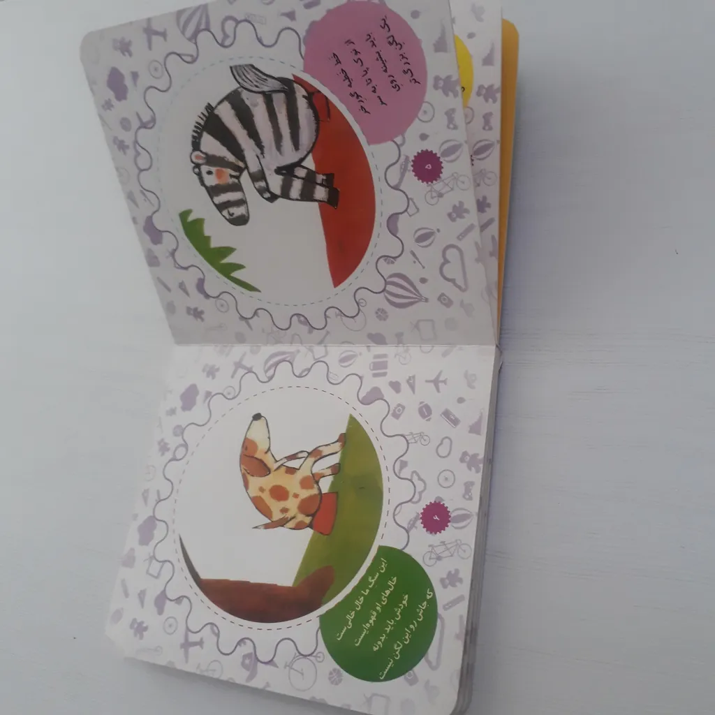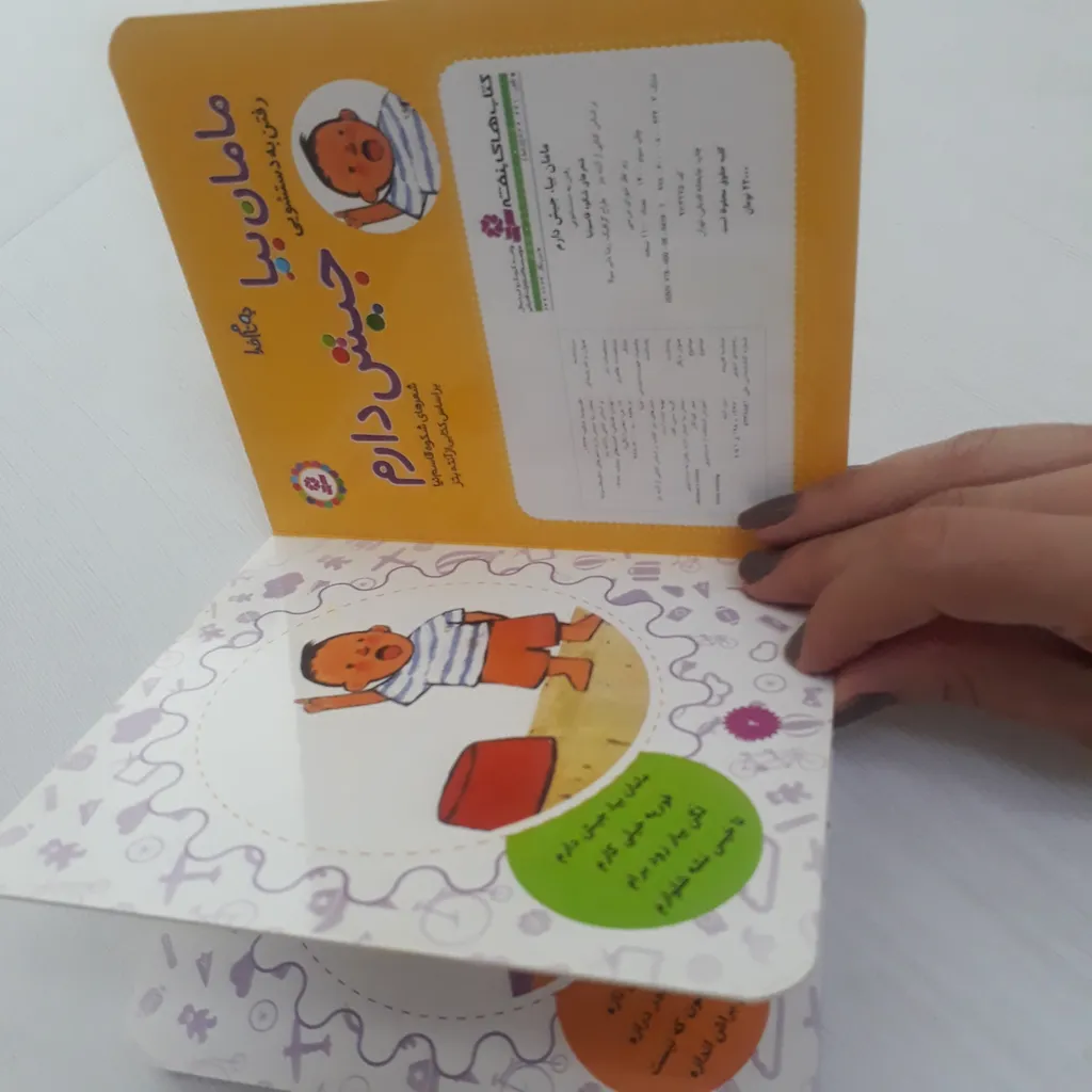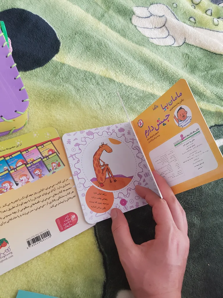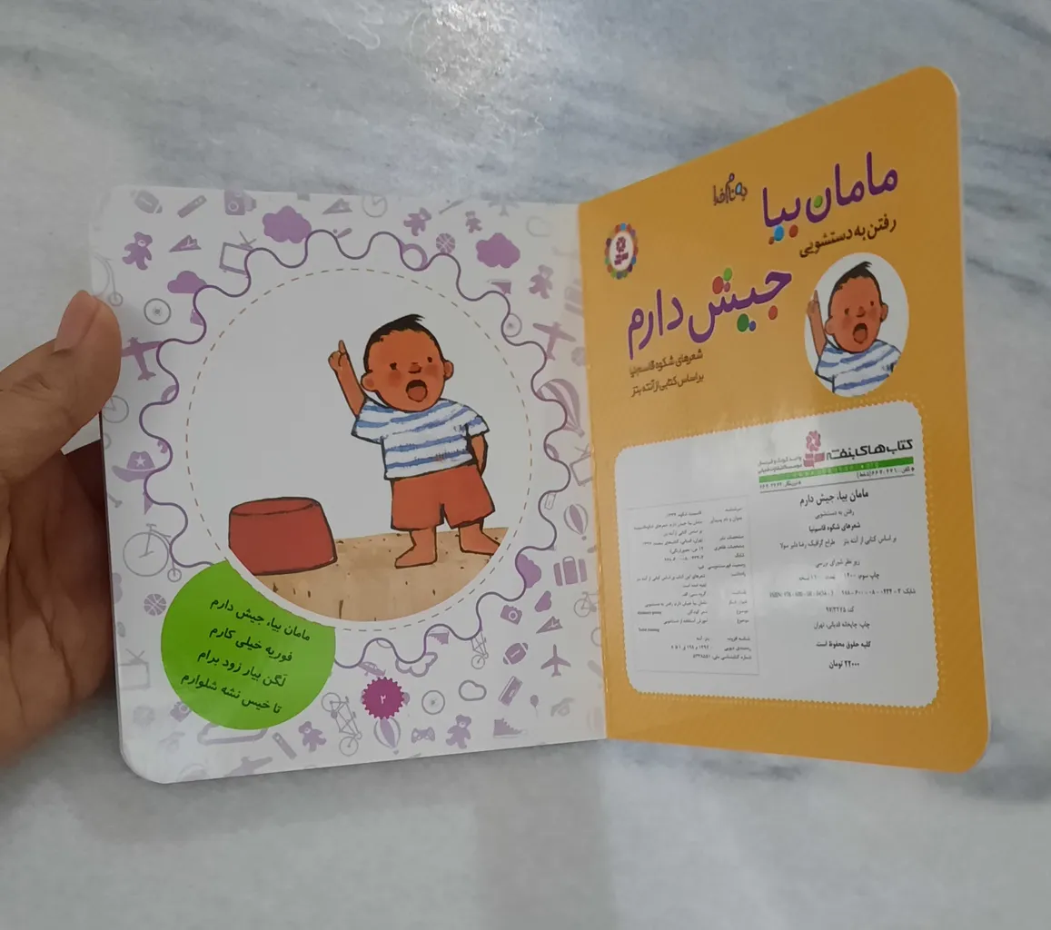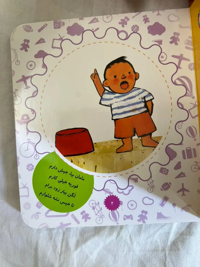 کتابش خیلی کوچیک و کم حجم هستش.تصاویر رنگی و شعرهای کوتاه داره.برای بچه هایی که میخوان از پوشک گرفته بشن خوب و مناسبه.اونی که واسم فرستادید لبه بالای کتاب خوردگی داشت و همون اول هم چسبش کنده شد.عکس هم گذاشتم