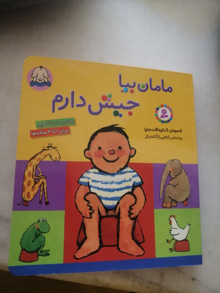 کتاب محکمیه.اما محتوای بخصوص. و اموزنده ای نداره ک بچه با پروسه توالت رفتن و کنار گذاشتن پوشک اشنا بشه. هر صفحه دوتا بیت شعر الکی داره فقط.