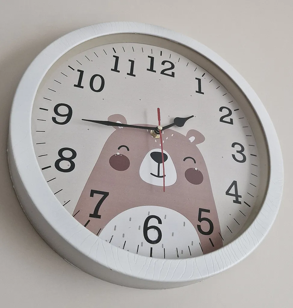 - ⬤ ساعت دیواری : ساعتهای دیواری کودک معمولاً با طراحیهای جذاب و رنگهای شاداب عرضه میشوند. خریداران به زیبایی و طراحی این ساعتها توجه کرده و از مدلهایی که موتور بیصدا دارند، رضایت بیشتری دارند. اما برخی از خریداران به کیفیت ساخت پایین و رنگهای کمرنگ انتقاد کردهاند. همچنین، برخی ساعتها به دلیل عدم وضوح عقربهها در پسزمینه تیره، کارایی کمتری دارند.