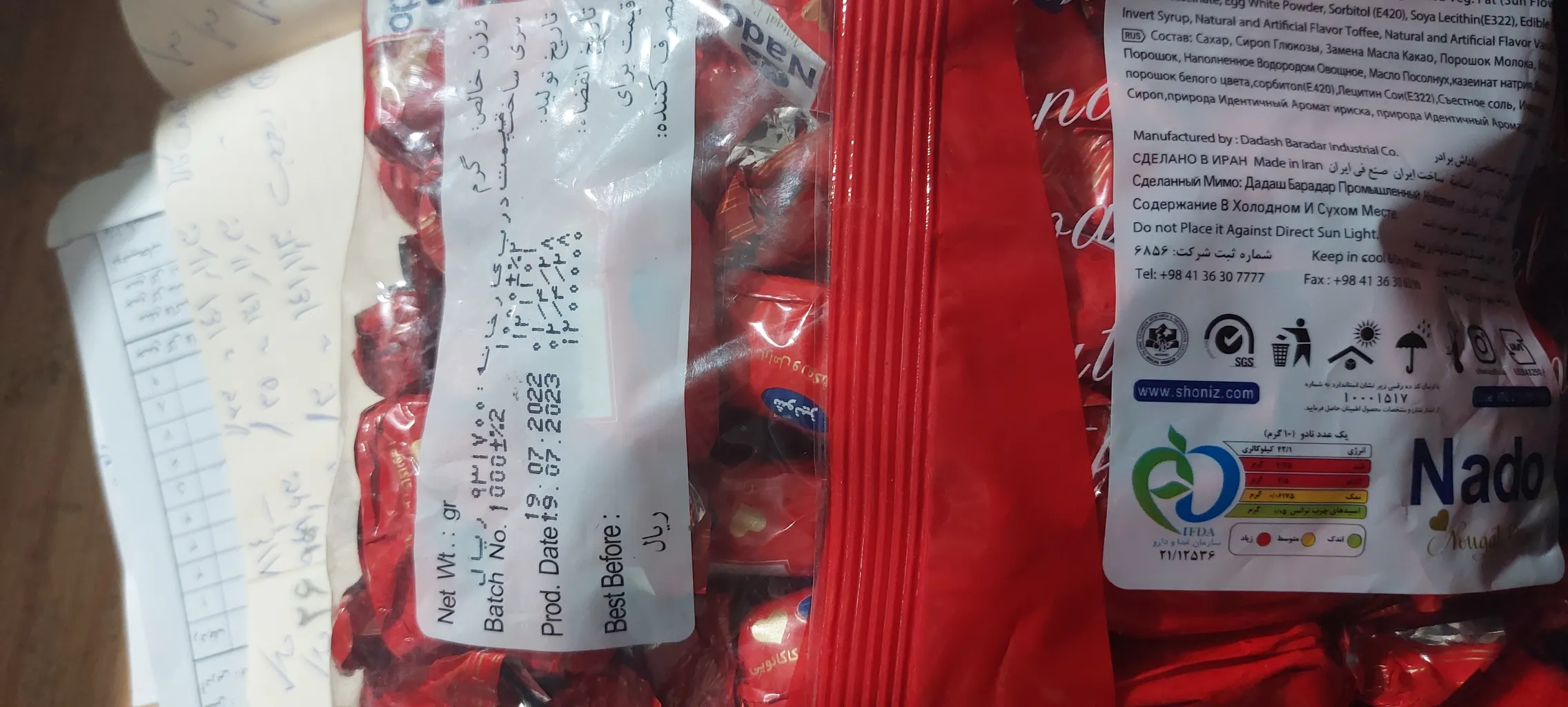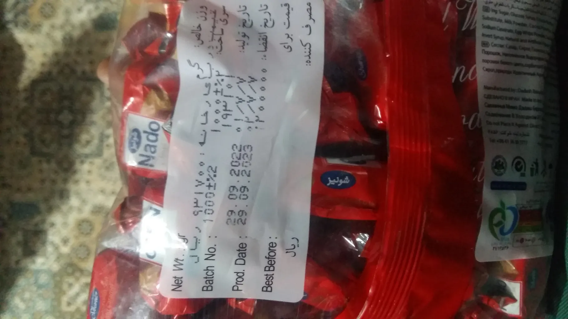 زینب دهقان طرزه : تافی کاراملی نادو (شونیز) ؛ هنوز مصرف نکردیم ولی با تعاریف کاربران، گویا مزه ی خیلی خوبی داره. با قیمت خیلی مناسب (۱۱۳ هزار تومن) خریدم. محصول، سالم به دستم رسید و تاریخ هم داره. با تشکر از فروشنده و دیجی کالا