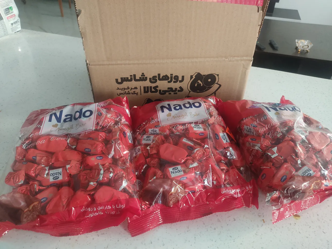 شکلاتها خوشمزه و تازه بودند ولی دو نوع بودند ومن شکلات با طعم سوهان و گز سفارش داده بودم که متاسفانه یه مدل شکلات دیگه قاتی اینا کرده بودن که اونا سفت و مونده بود، من همیشه از دی جی کالا به هوای تازگی شکلاتها خرید میکردم ولی واقعا این خیلی کار زشتیه که بردارن شکلات دیگه ای قاتی کنن تا بشه نیم کیلویی که من خواستم و بخوره تو ذوقم، این غش در معامله هست خواشا رسیدگی کنید. من عکسشو گذاشتم که دیگران ببینند و مثل من سرشون کلاه نره