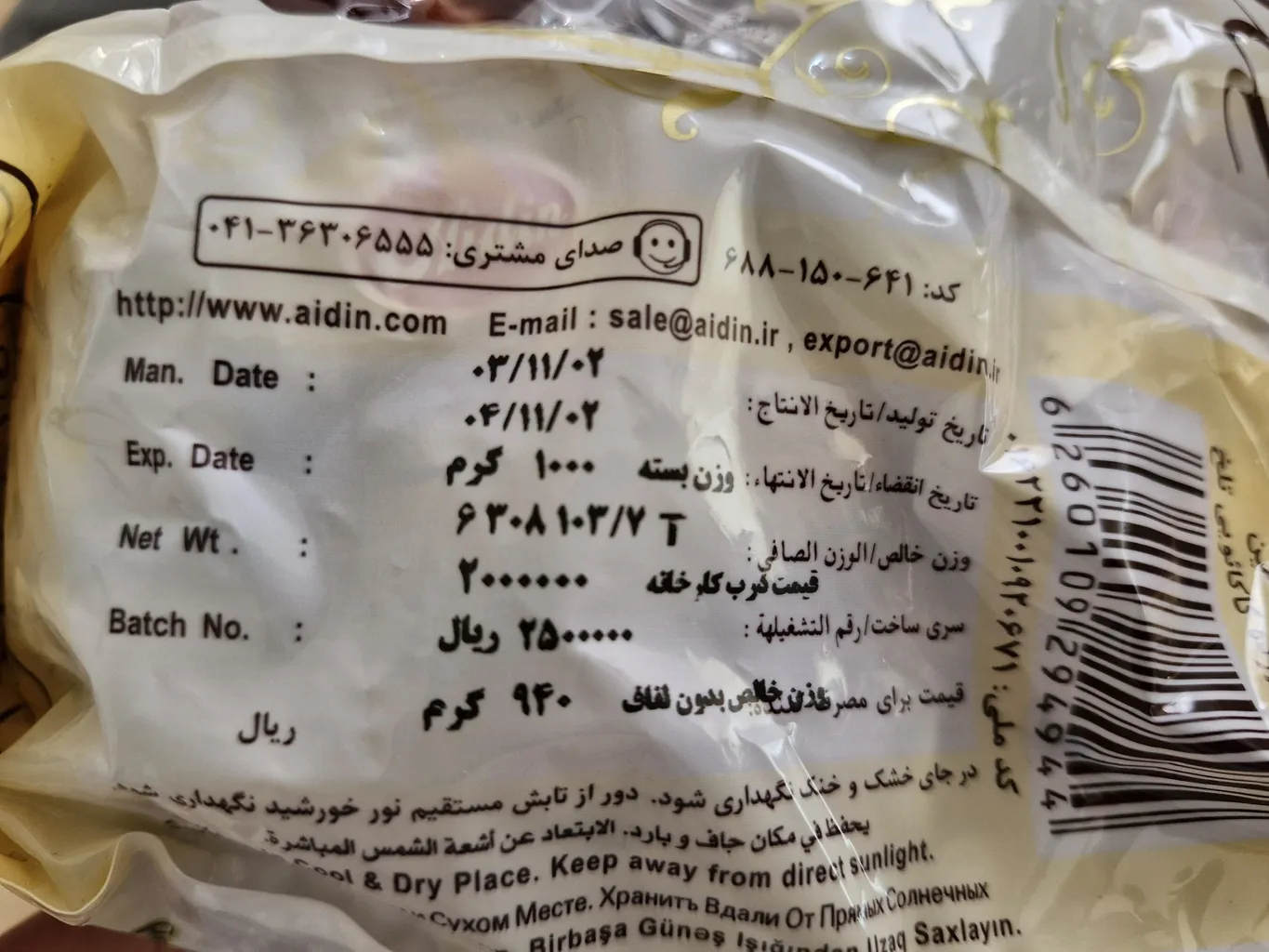 نظر و تجربه خرید تافی توفیکا آیدین مقدار 1 کیلو گرمدر تاریخ ۲۹ خرداد ۱۴۰۳