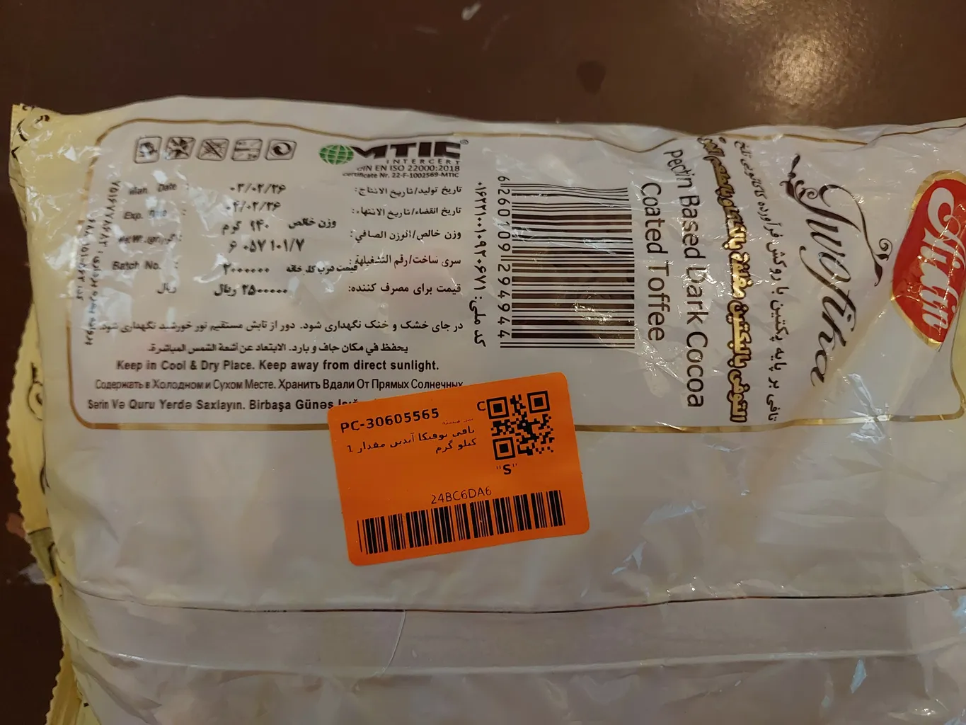 مثل همیشه بود مزش. مقدار کاکائو و کاراملش اندازست.. تعداد در بسته یک کیلویی 90 تافی هر کدوم تقریبا 30 گرم
