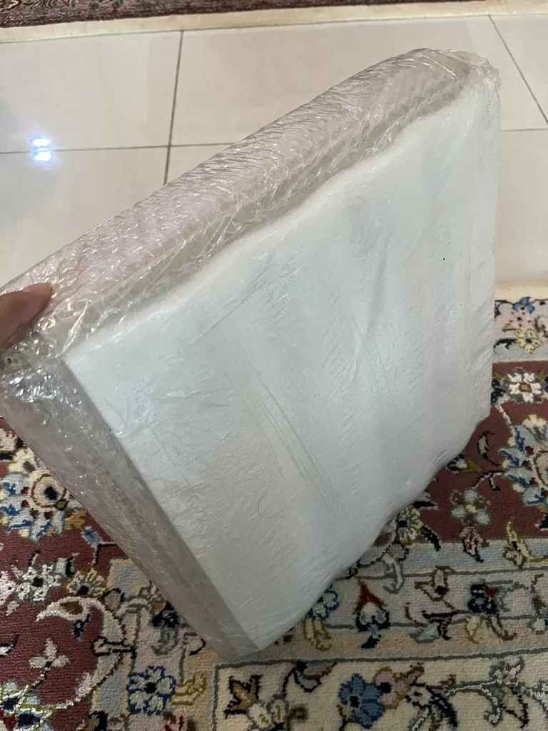 ⬤بسته از قسمت مقواییش پاره شده بود ولی پلاستیک حباب دار سالم بود