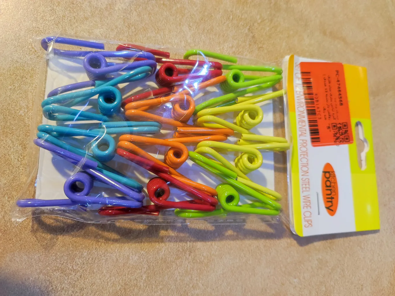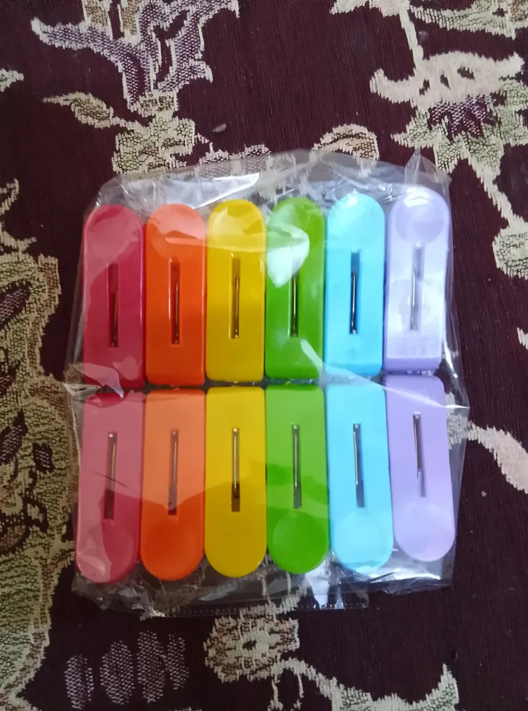 گیره لباس ؛ من گیره ها رو از فروشنده بزک دوزک خریدم و برخلاف دوستی که گفتن ده تا از گیره ها کم بود برای من هشت تا هم زیاد بود و این گیره ها خیلی محکم و زیبا هستن و برای فیکس کردن پارچه موقع خیاطی به جای استفاده از سوزن ته گرد استفاده میشه و به درد بندرخت نمیخوره. عکس میزارم تا ببینید