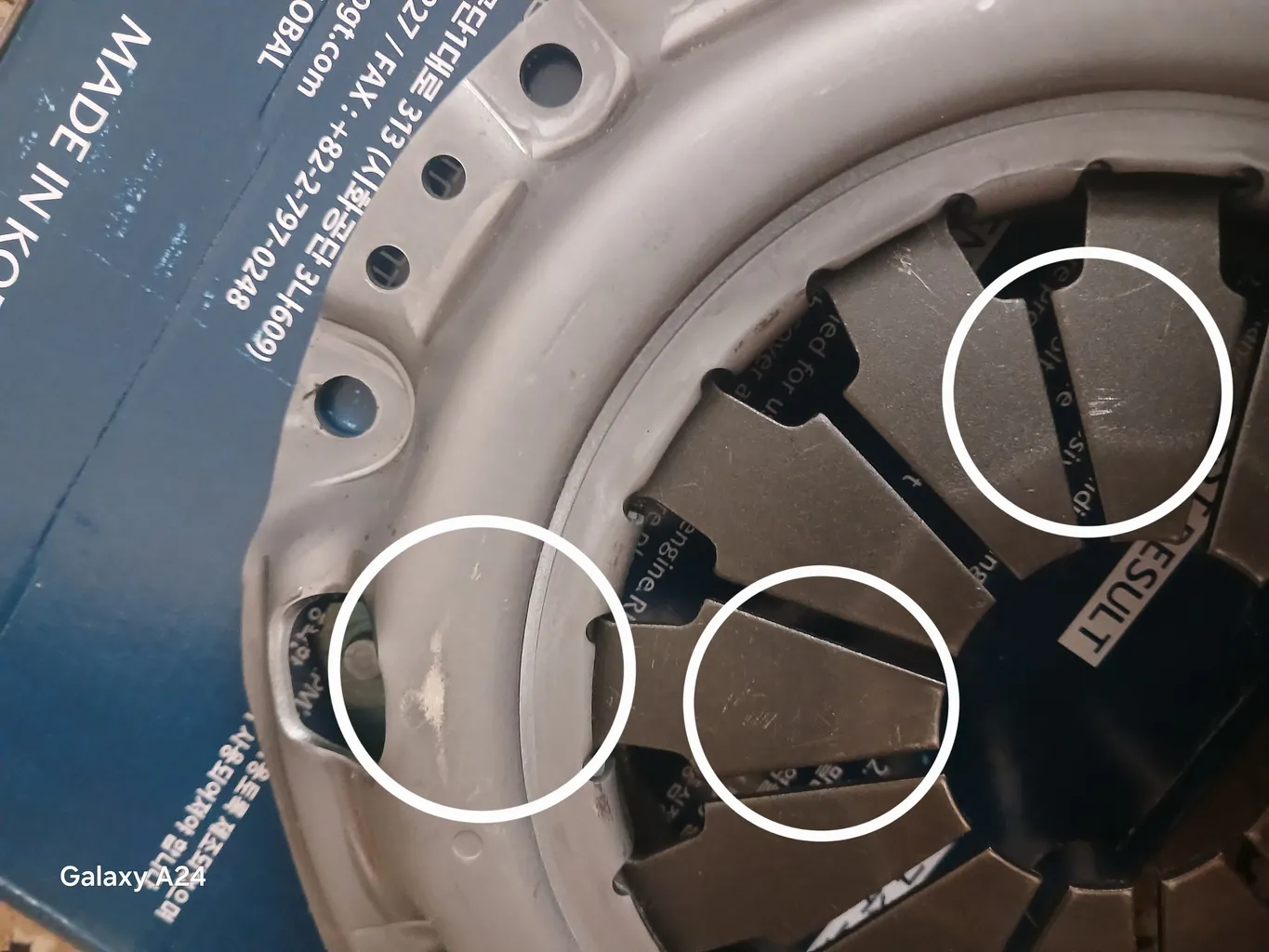 ۴.عبارتMade in Korea که بر روی بلبرینگ کلاچ ثبت شده کاملا شل و ول و یه جورایی کپی شده س که داخل عکس میزارم خودتون قضاوت کنید.