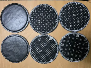 4 تا از زیر لیوانی ها سبز و 2 تایید دیگه خاکستری با رگه های سفید بود زیره کار باهم فرق داشت دوتا چرم بقیه پارچه ای، من برای دم دستی گرفتم و ارزش مرجوع نداشت اما عکس میذارم تا بقیه آگاه بشن