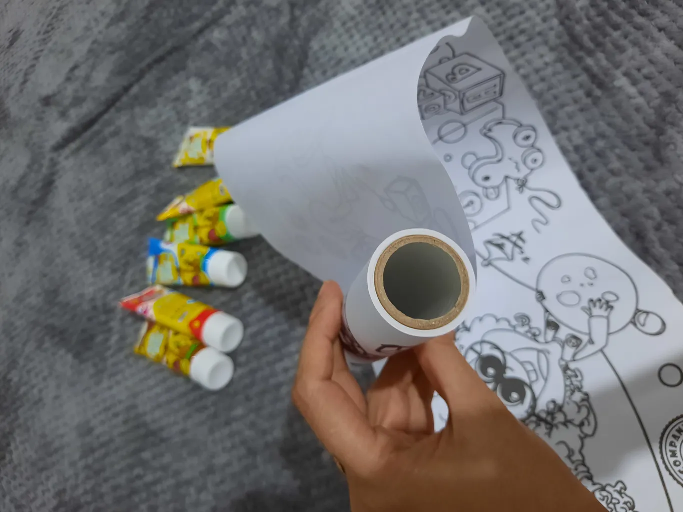 یه رول عکس کاغذی نازک پشت چسبدار داره ،حدودا سه متری ، میتونی هر پنجاه سانتش را جدا کنین و به دیوار بچسبونین تا کودک رنگ کنه.
