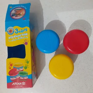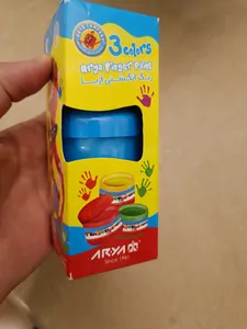 رنگ انگشتی آریا ؛ سه تا رنگ داخلشه. قرمز و آبی و زرد رنگ انگشتی فرقش با بقیه رنگها اینه که خیلی راحت با آب پاک میشه و به درد بچه ها میخوره