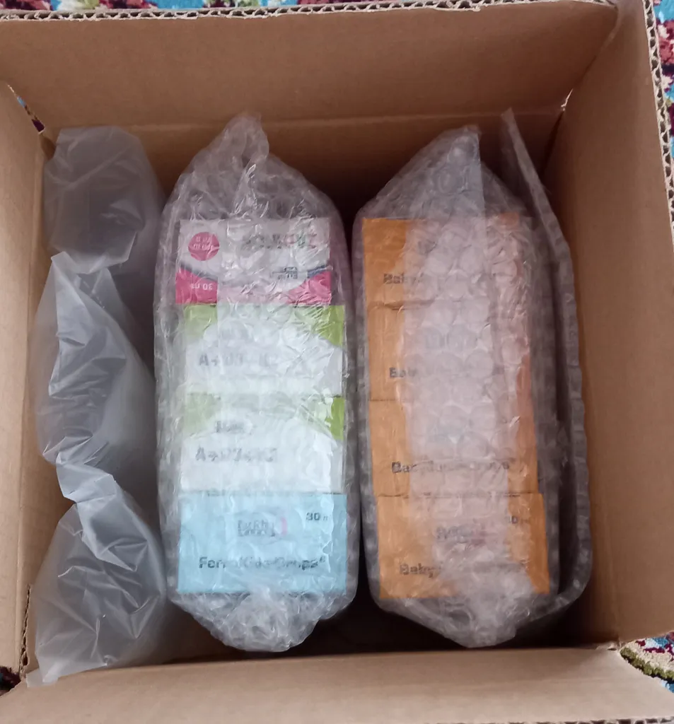 پریزادسادات پیروز : از فروشنده مکمل فارماسی خریدم و با بسته بندی بسیار نامناسب بدستم رسید و چندین شربت شکسته بودن و داخل جعبش ریخته بودم عکس میذارم فقط ببینید شربت شیشه ای به چه روزی دراومده اصولا این مدل شربتها رو داخل تک تک شربتها حباب پیچ میذارن که بهم نخورن و نشکنن!