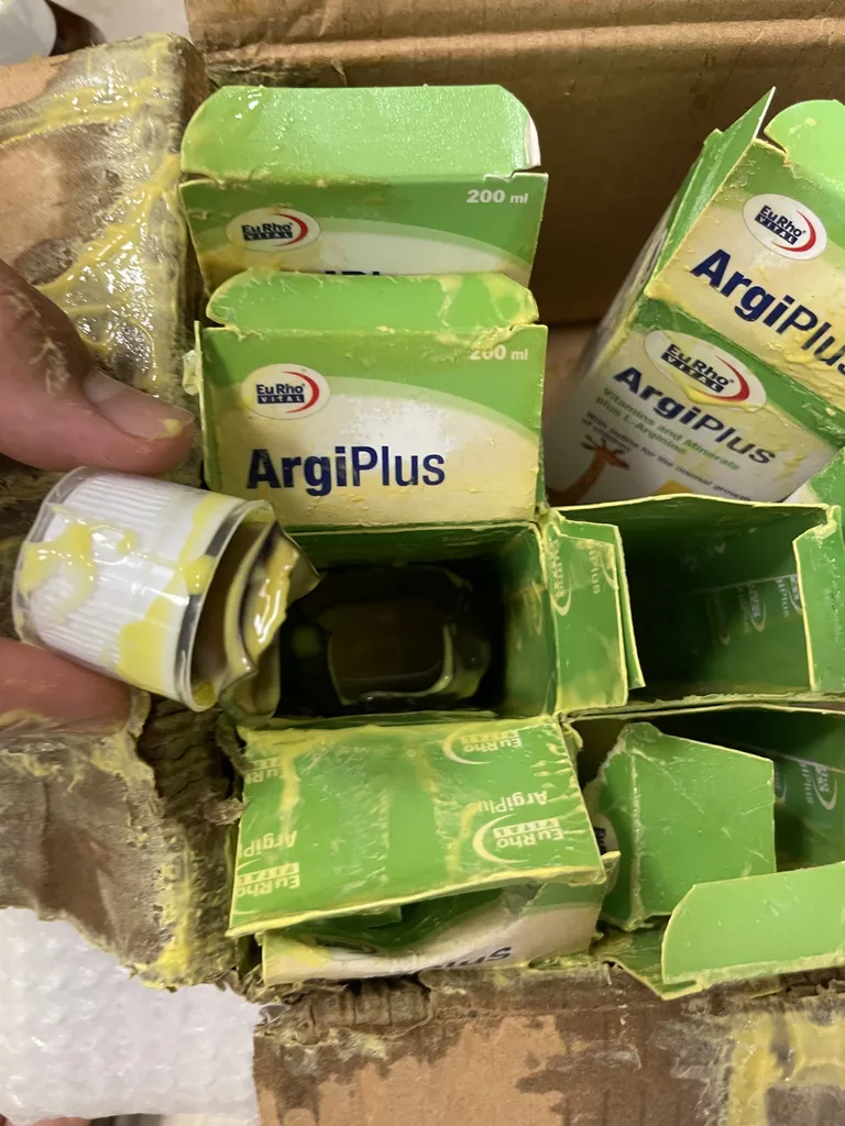 از فروشنده مکمل فارماسی خریدم و با بسته بندی بسیار نامناسب بدستم رسید و چندین شربت شکسته بودن و داخل جعبش ریخته بودم عکس میذارم فقط ببینید شربت شیشه ای به چه روزی دراومده اصولا این مدل شربتها رو داخل تک تک شربتها حباب پیچ میذارن که بهم نخورن و نشکنن!