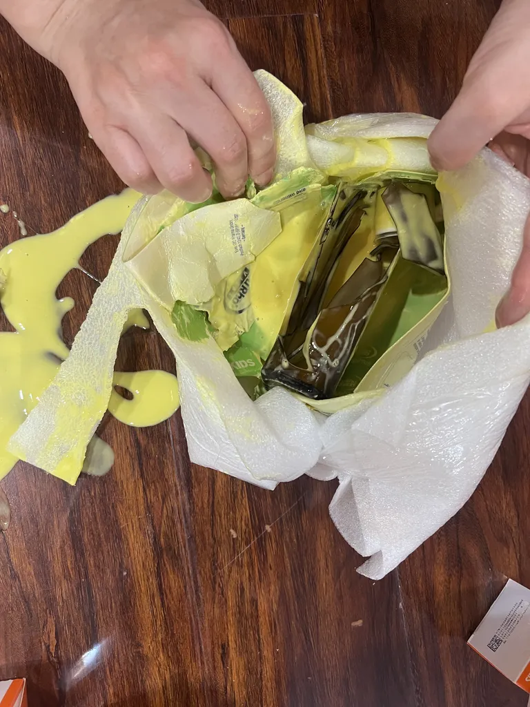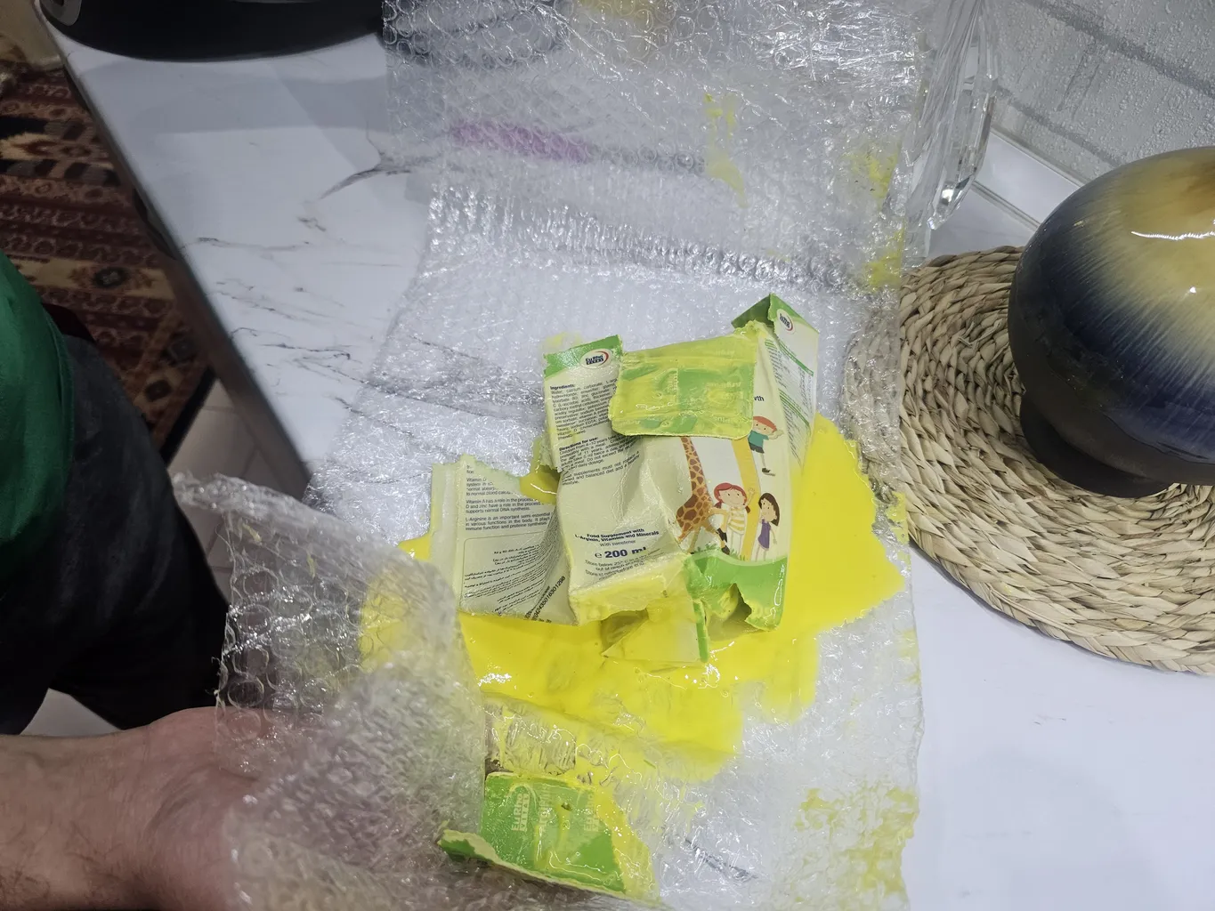ولی متاسفانه به دلیل بسته بندی نامناسب، شیشه شربت شکسته بود