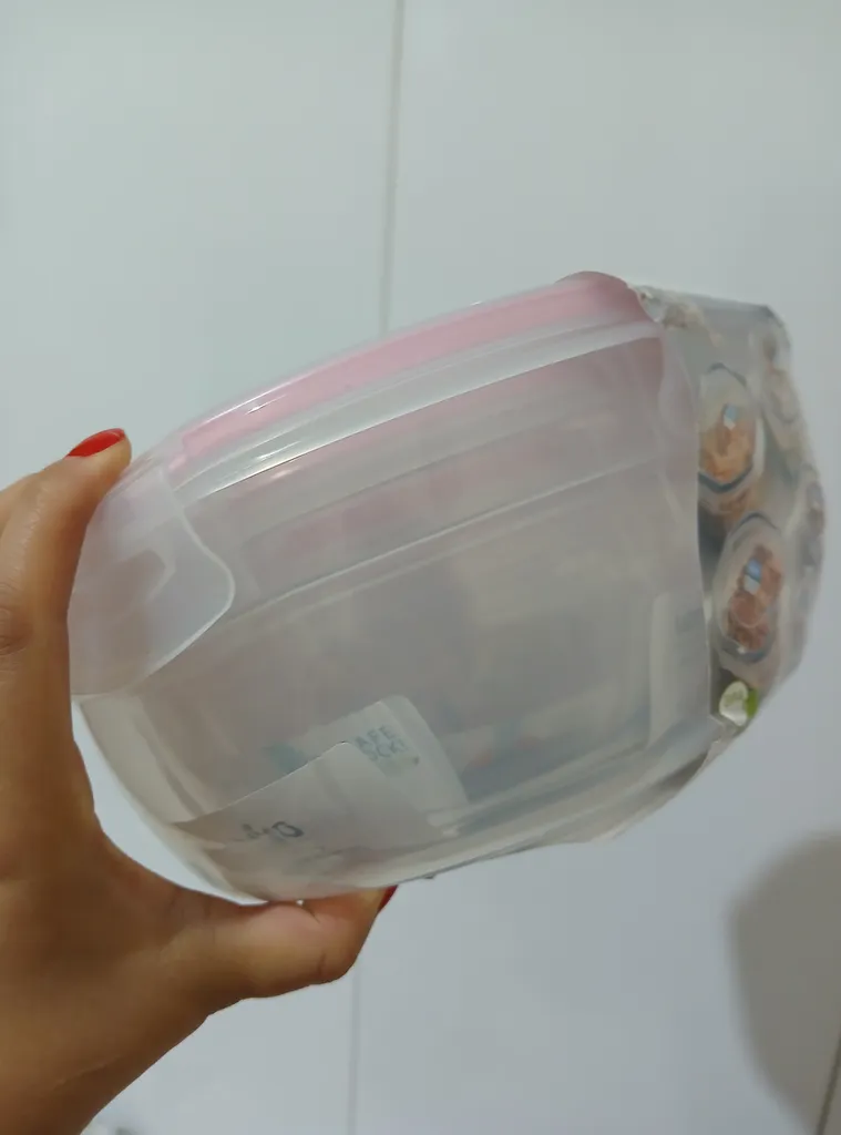 خریدار بدون نام : ظرف تقسیم بندی شده ؛ خب حتما قرار نیست تو این ظرف غذا بذاریم که :)) من از این ظرف برای پد های آرایشیم استفاده کردم ، چون پد ها و براش ها ارتباط مستقیم با پوست داره و باید در فضایی باشه که گرد و خاک و آلودگی روش نشینه ، من بعد از هر استفاده پد ها رو میشورم یا با الکل ضد عفونی میکنم و بعد میذارم در این ظرف، مراقب پوستمون باشیم :) عکس ها رو گذاشتم تا شما هم ایده بگیرید