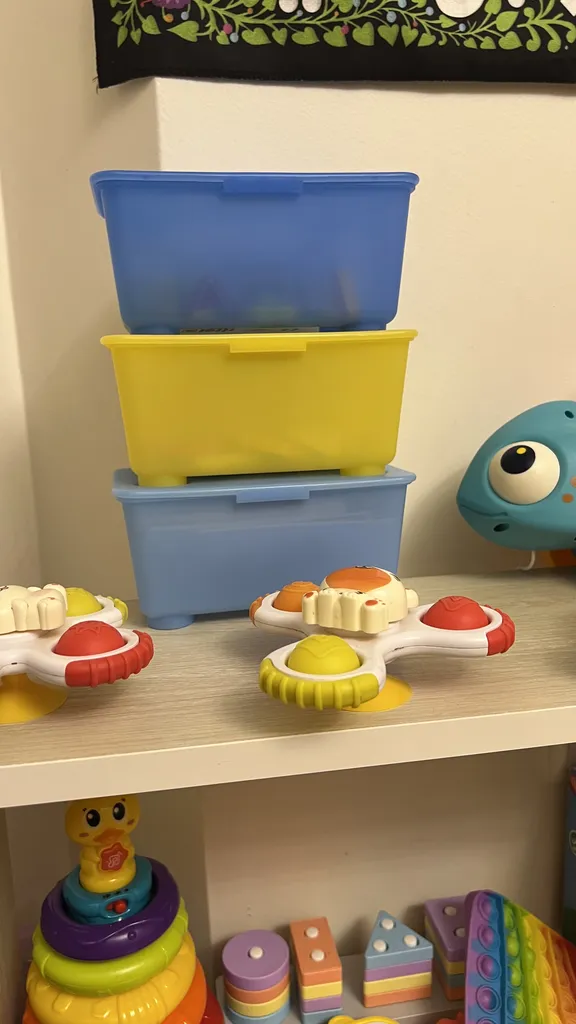 من این ظرفارو برای جای اسباب بازی پسرم گرفته بودم و نمیتونم بگم وقتی ابعادشو دیدم چقدر پنچر شدم ،از توی عکسا به نظر بزرگتر بود ، حالا من عکسشو میذارم شما هم ببینین که به اشتباه نیافتین ، ولی در کل ایکیا همیشه با کیفیته ، درش هم خوب کیپ میشه