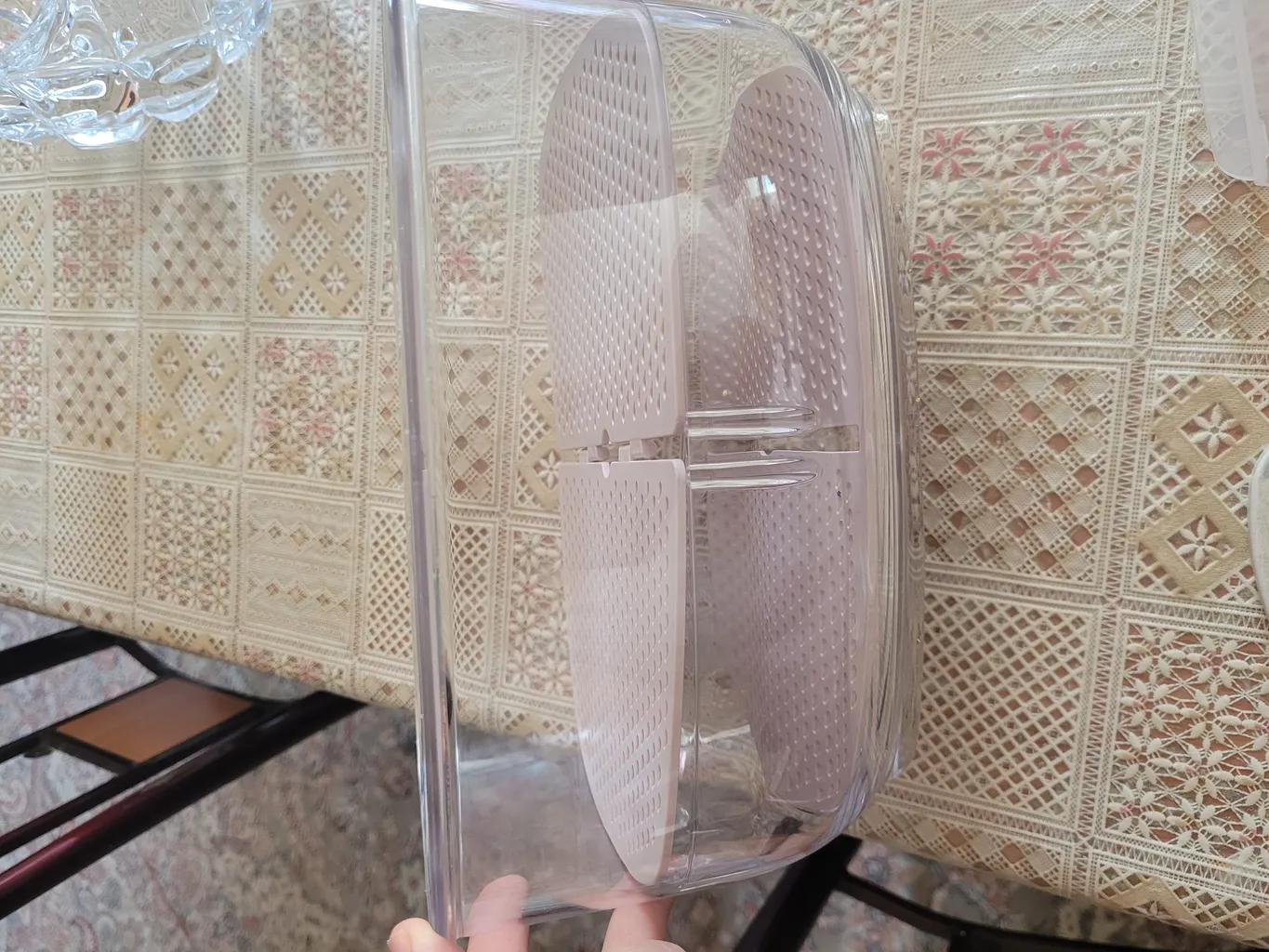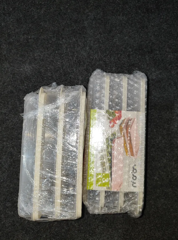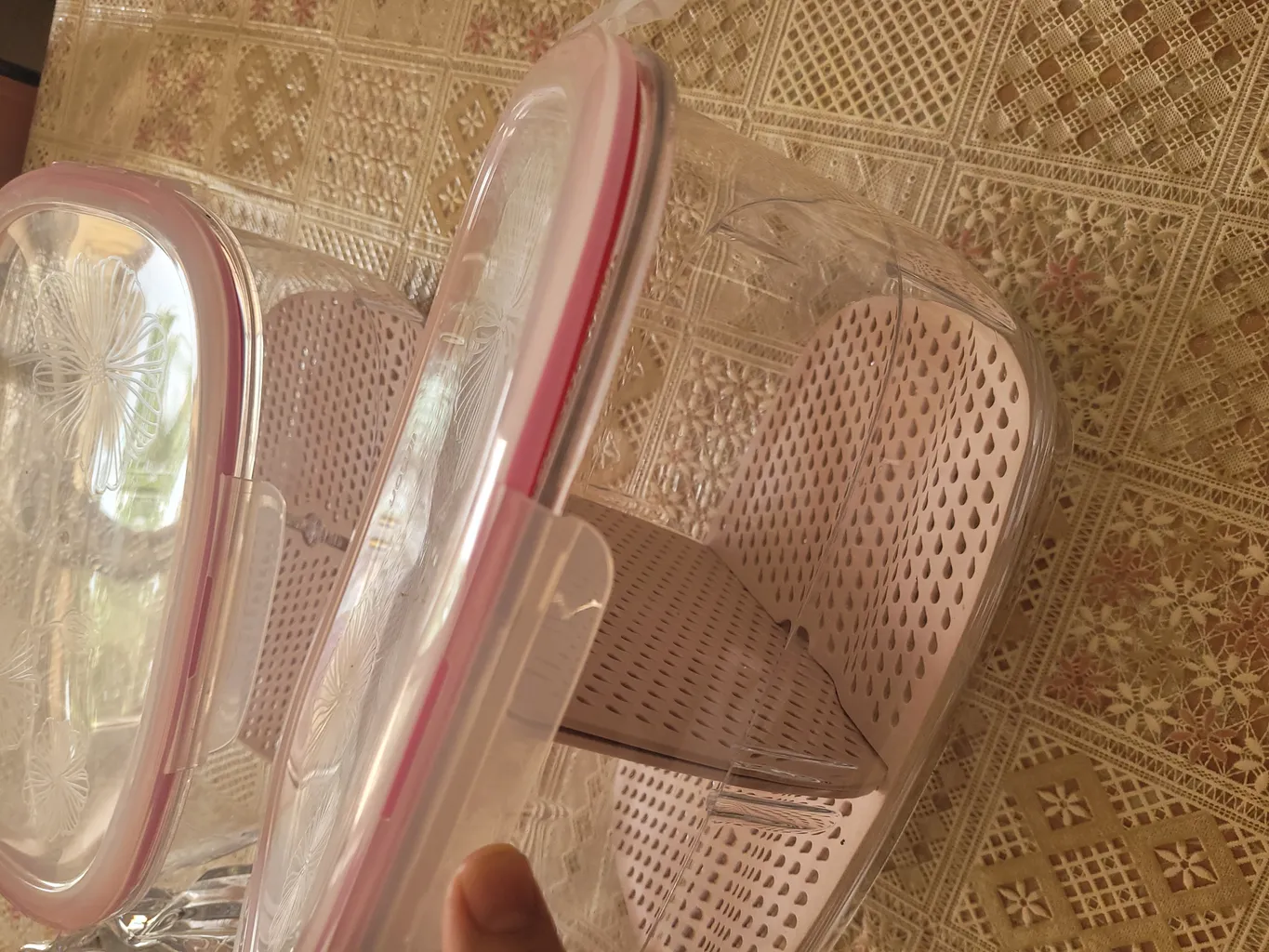 از همه چی بیشتر جنس این ظرف نظر منو جلب کرد از پلاستیک کدر نیست یه جنس از پلاستیک شفاف بی رنگ هست همانند شیشه .نسبتا جای خوبی داره ولی تقسیم بندی بیشتر برای سبزی خوبه ومیوه های ریز مثل توت وگیلاس برای گوجه وخیار جز سبد پایین سبد بالا کارایی نداره