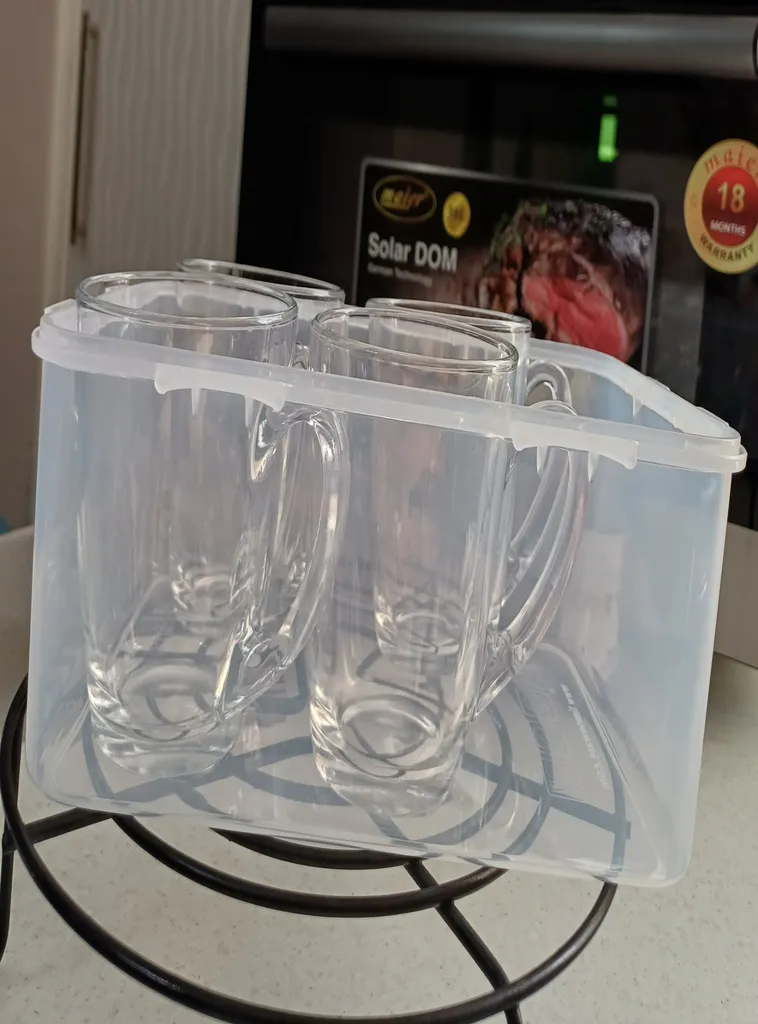 جنسش خوبه، من برای لیوان پیک نیک گرفتم ارتفاع لیوان های من ۱۰ سانتی متر هست ولی وقتی داخل ظرف میزارم درش بسته نمیشه،باید استکان های کوچکتری رو تهییه کنم یا ظرف بزرگتری برای استکان هام انتخاب کنم