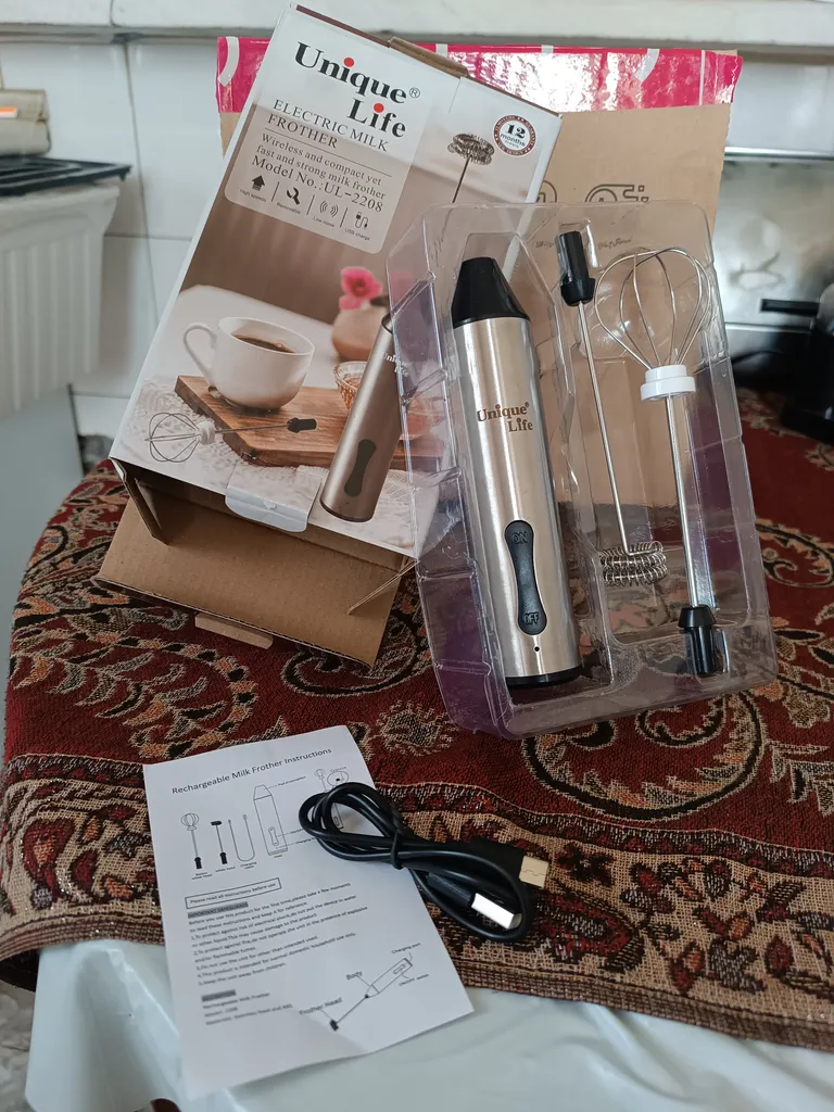 - ⬤ همزن شیر : این ابزار برای هم زدن شیر و تهیه کف شیر استفاده میشود. خریداران از کارایی و سرعت آن راضی هستند، اما برخی به کیفیت مواد اولیه و احتمال خراب شدن آنها در طول زمان انتقاد دارند.