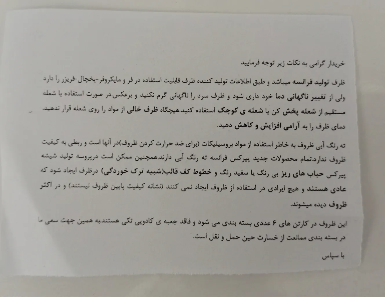 - ⬤ معایب و نقاط منفی کالاهای ایرانی : با وجود مزایای فراوان، برخی خریداران به معایب کالاهای ایرانی نیز اشاره میکنند. از جمله این معایب میتوان به عدم یکنواختی در کیفیت برخی محصولات و مشکلاتی در بستهبندی اشاره کرد. برخی از خریداران از این موضوع شکایت دارند که برخی از ظروف پس از استفاده دچار تغییر رنگ یا لک میشوند. همچنین، در برخی موارد، عدم وجود اطلاعات کافی در مورد نحوه نگهداری و استفاده از محصولات نیز به عنوان یک نقطه ضعف مطرح شده است.