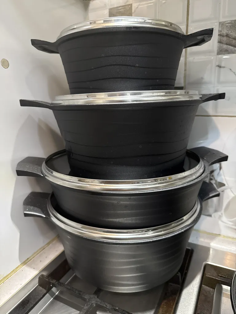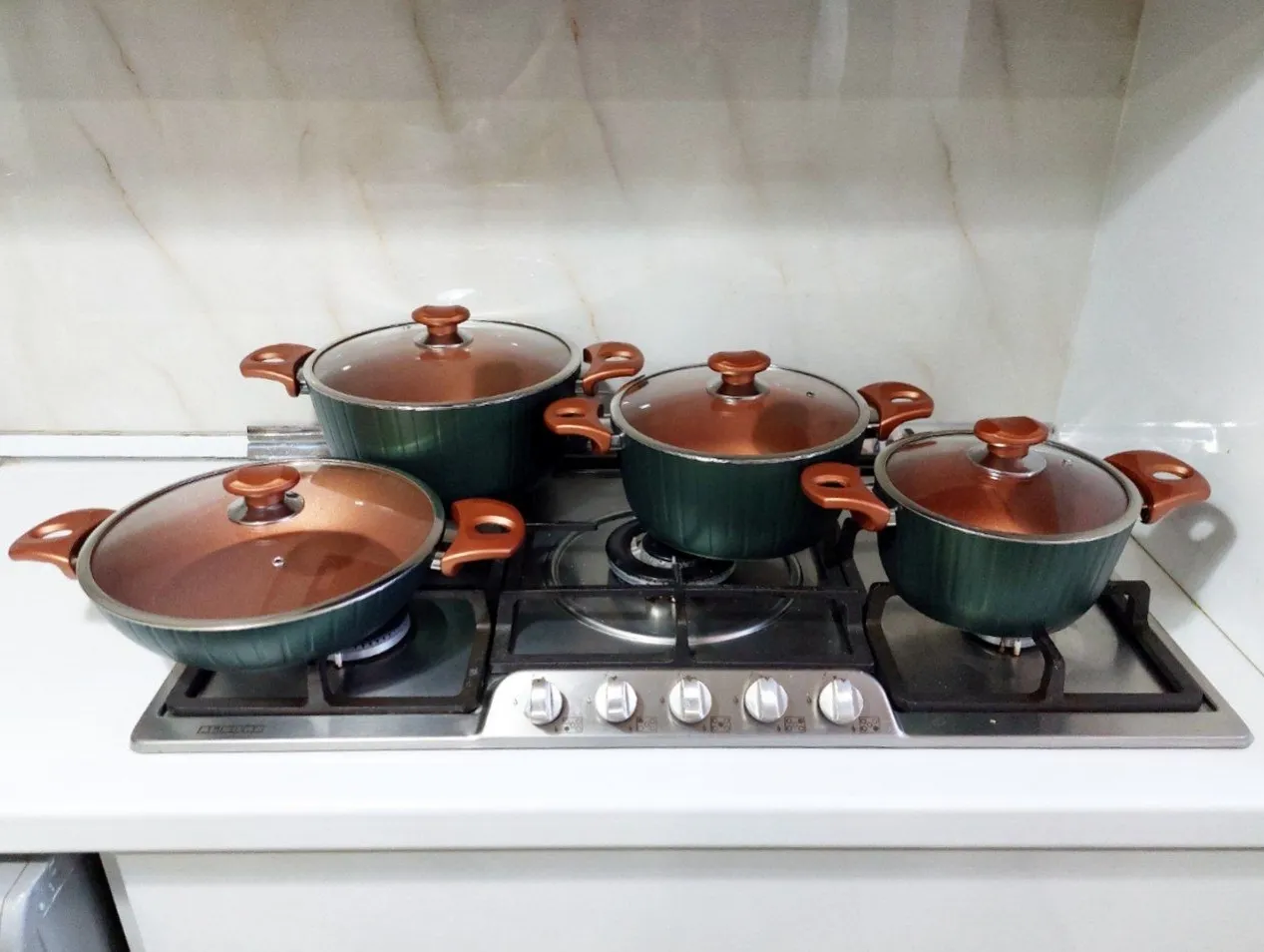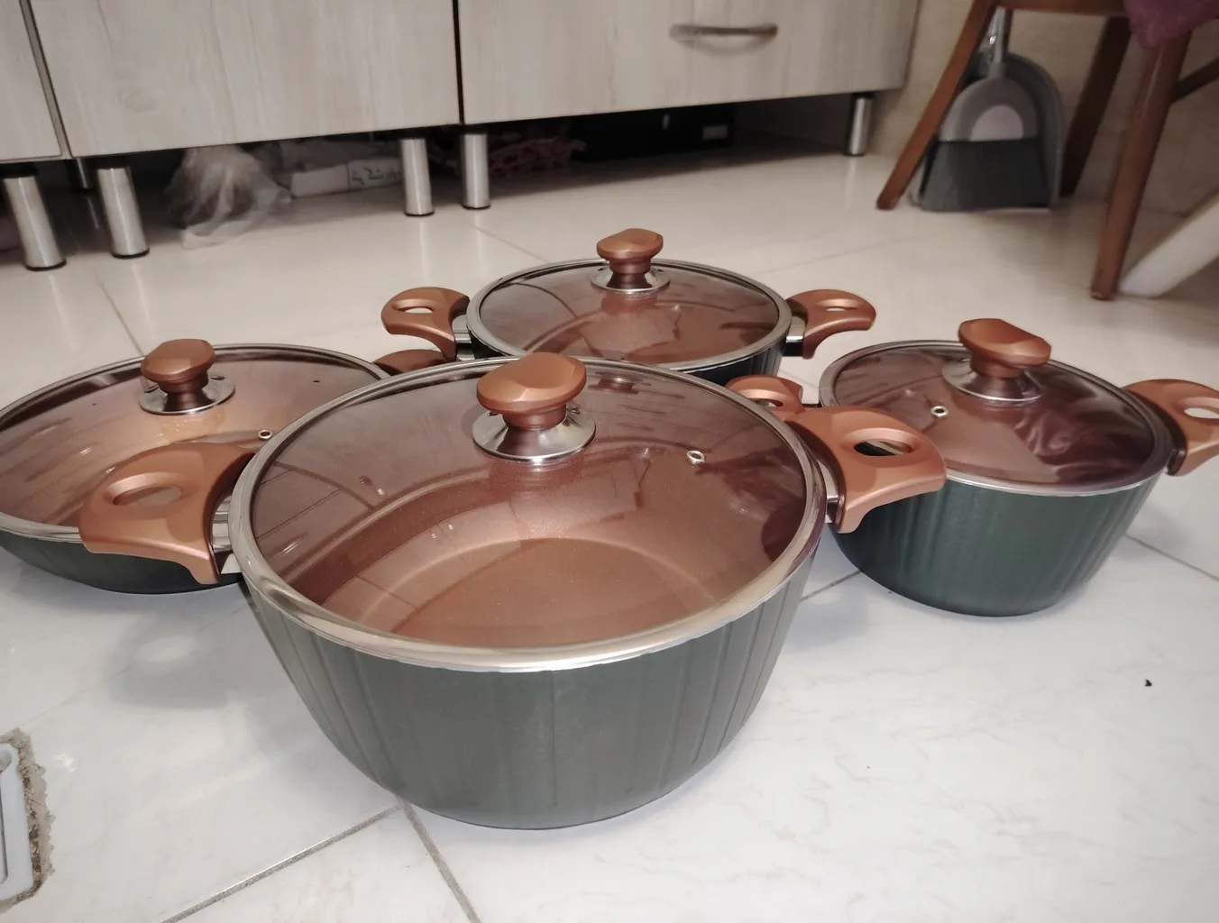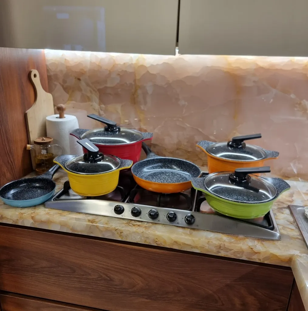 - ⬤ تنوع رنگ : خریداران به تنوع رنگهای موجود در سرویسهای پخت و پز اشاره کردهاند. وجود رنگهای مختلف مانند مشکی، سفید، قرمز، آبی، سبز و رنگهای متالیک به خریداران این امکان را میدهد که با توجه به دکوراسیون آشپزخانه خود، انتخاب مناسبی داشته باشند.