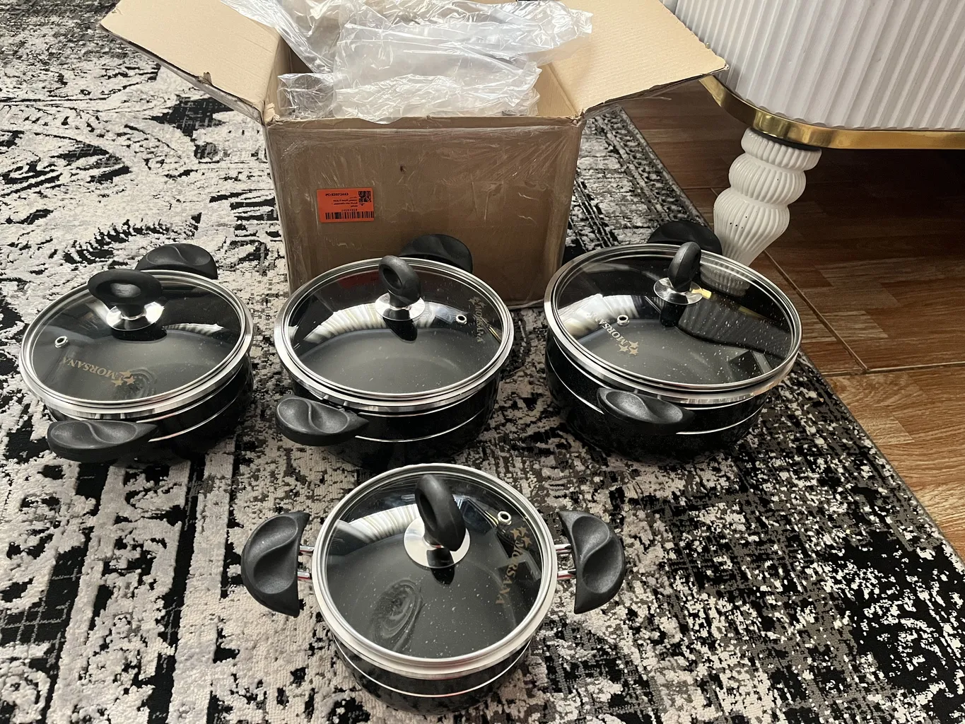 - ⬤ تعداد و اندازهها : تعداد و اندازههای مختلف قابلمهها و تابهها باید متناسب با نیازهای شما باشد. خریداران به تعداد مناسب و ابعاد کاربردی اشاره کردهاند، اما برخی از آنها از کوچک بودن برخی مدلها و عدم تطابق با نیازهای خود ناراضی بودند.