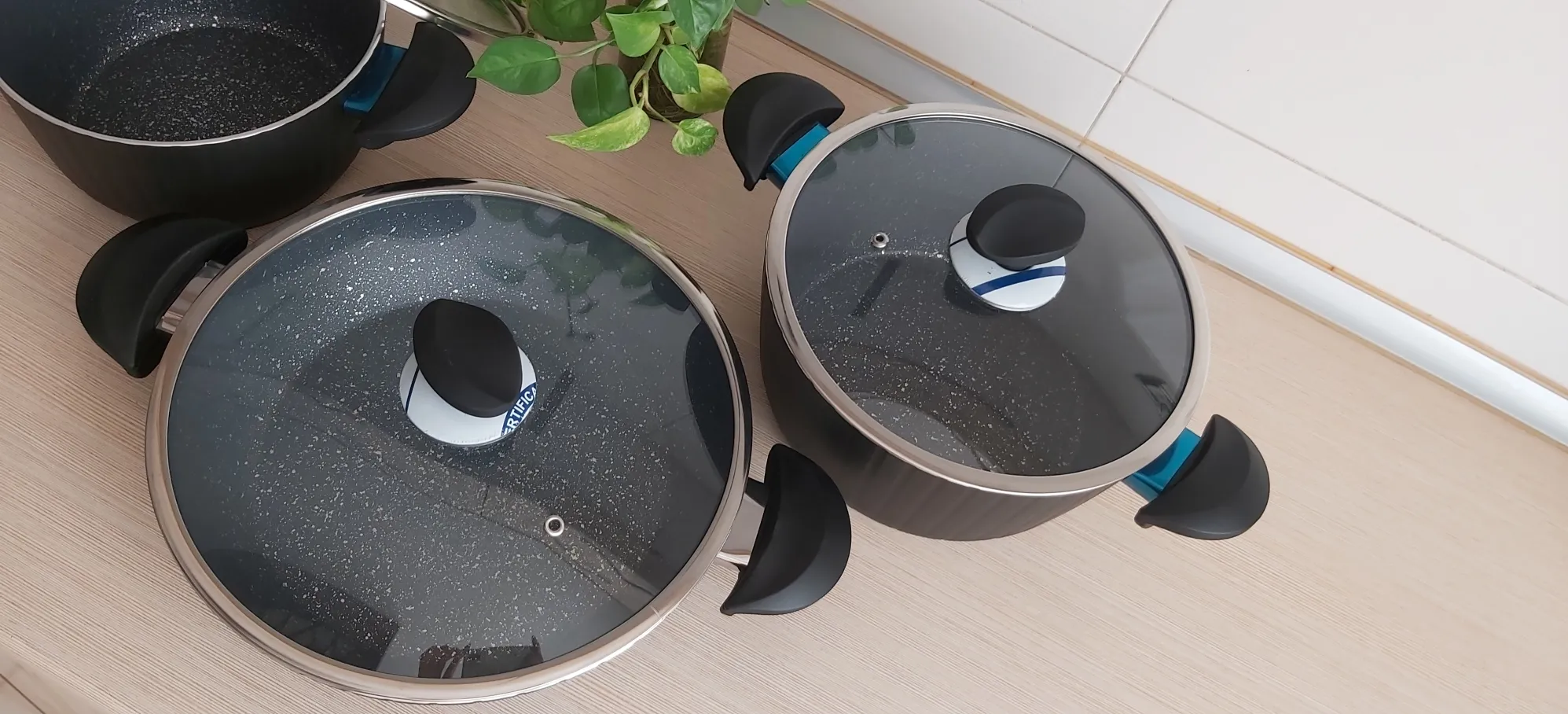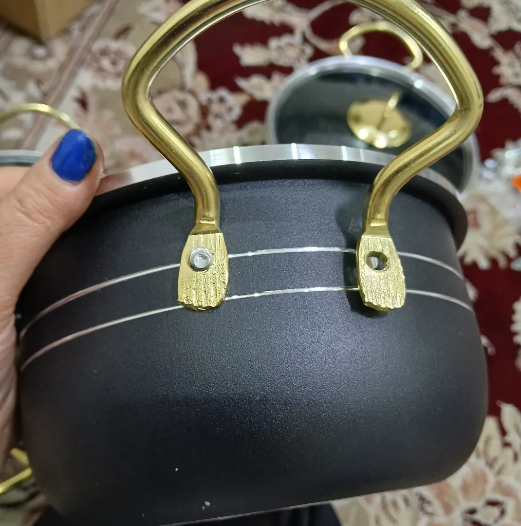 - ⬤ توجه به رنگ دستهها و دربها : خریداران به هماهنگی رنگ دستهها و دربهای قابلمهها و تابهها نیز توجه کردهاند. عدم هماهنگی در رنگ میتواند به زیبایی کلی محصول آسیب بزند.