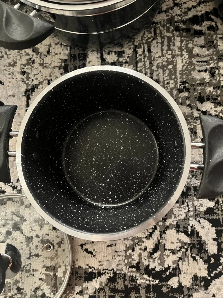 - ⬤ گرانیت : گرانیت به عنوان یک جنس با کیفیت و نچسب شناخته میشود. خریداران به زیبایی و مقاومت گرانیت در برابر خراش و حرارت اشاره کردهاند. اما برخی از آنها از عدم نچسب بودن برخی مدلها و احتمال ترک خوردن آن ناراضی بودند.