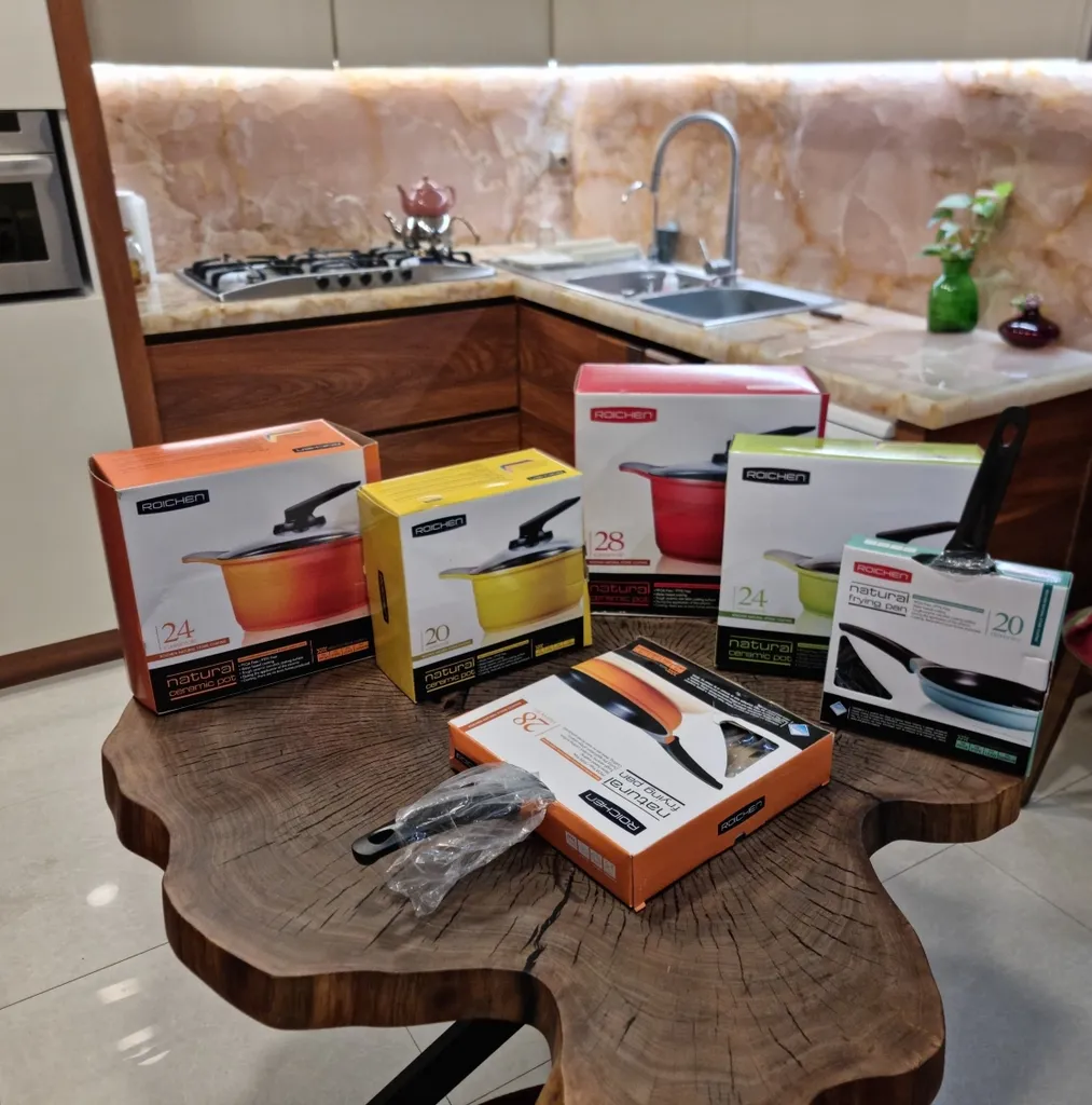 - ⬤ طراحی و زیبایی : طراحی و رنگ سرویس پخت و پز میتواند بر جذابیت آشپزخانه تأثیر بگذارد. خریداران به زیبایی و طراحی مدرن برخی مدلها اشاره کردهاند، اما برخی دیگر از عدم تطابق رنگ و طراحی با تصاویر ارائه شده ناراضی بودند.
