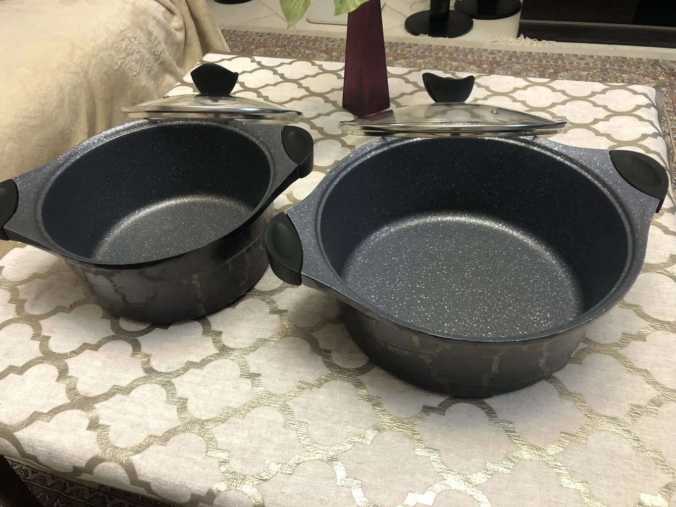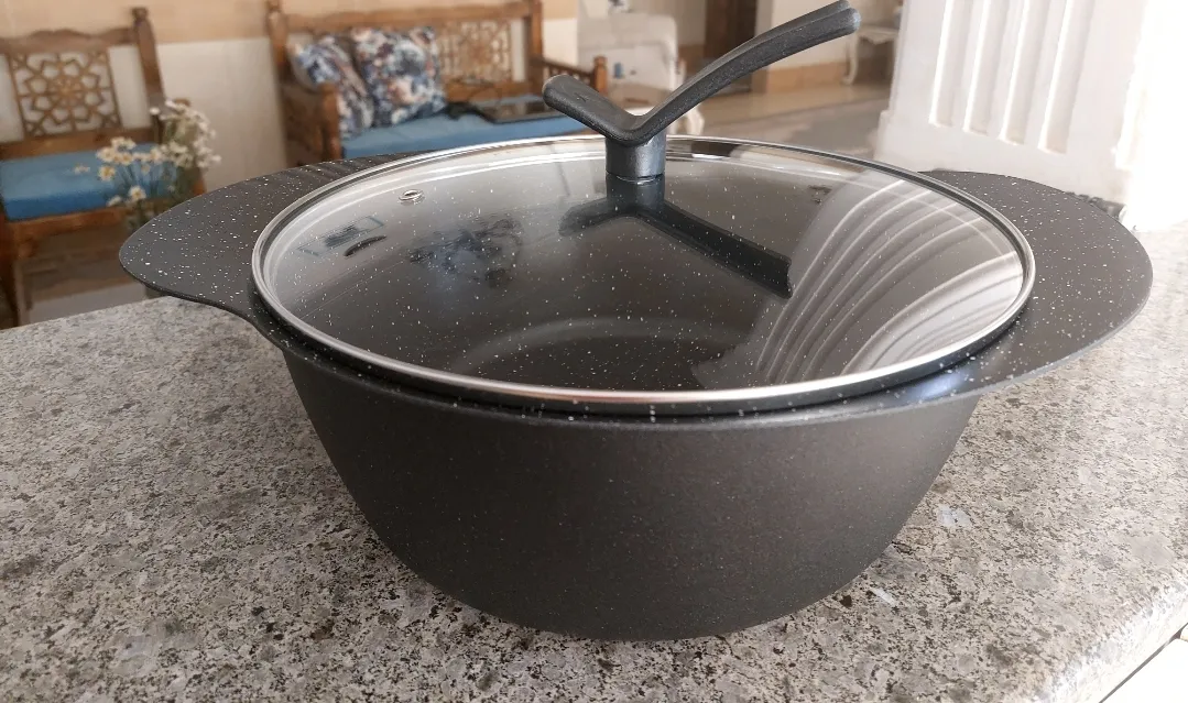 - ⬤ چدن : چدن حرارت را به خوبی نگه میدارد و برای پخت و پز طولانی مدت مناسب است. خریداران به کیفیت بالای چدن و توزیع یکنواخت حرارت اشاره کردهاند. اما برخی از آنها از وزن سنگین و نیاز به مراقبت بیشتر برای جلوگیری از زنگزدگی ناراضی بودند.