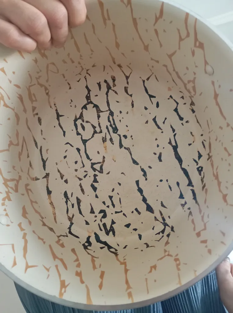 - ⬤ سرامیک : سرامیک به عنوان یک جنس سالم و غیر سمی شناخته میشود. خریداران به کیفیت پوشش سرامیکی و نچسب بودن آن اشاره کردهاند. اما برخی از آنها از شکنندگی و احتمال ترک خوردن سرامیک در برابر حرارت بالا ناراضی بودند.