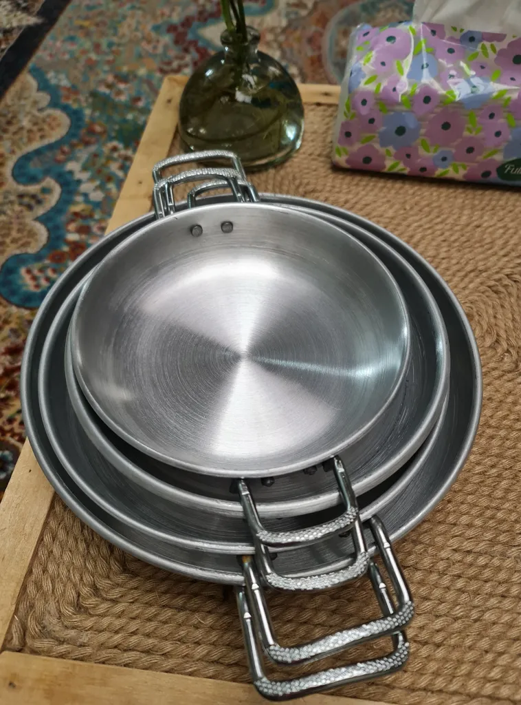 - ⬤ آلومینیوم : آلومینیوم سبک و سریع گرم میشود، اما ممکن است به راحتی خراشیده شود و کیفیت آن به مرور زمان کاهش یابد. خریداران به نازکی بدنه آلومینیوم و احتمال چسبیدن غذا به آن اشاره کردهاند. برخی از آنها از مدلهای آلومینیومی با پوشش نچسب راضی بودند، اما برخی دیگر از کیفیت پایین آن ناراضی بودند.