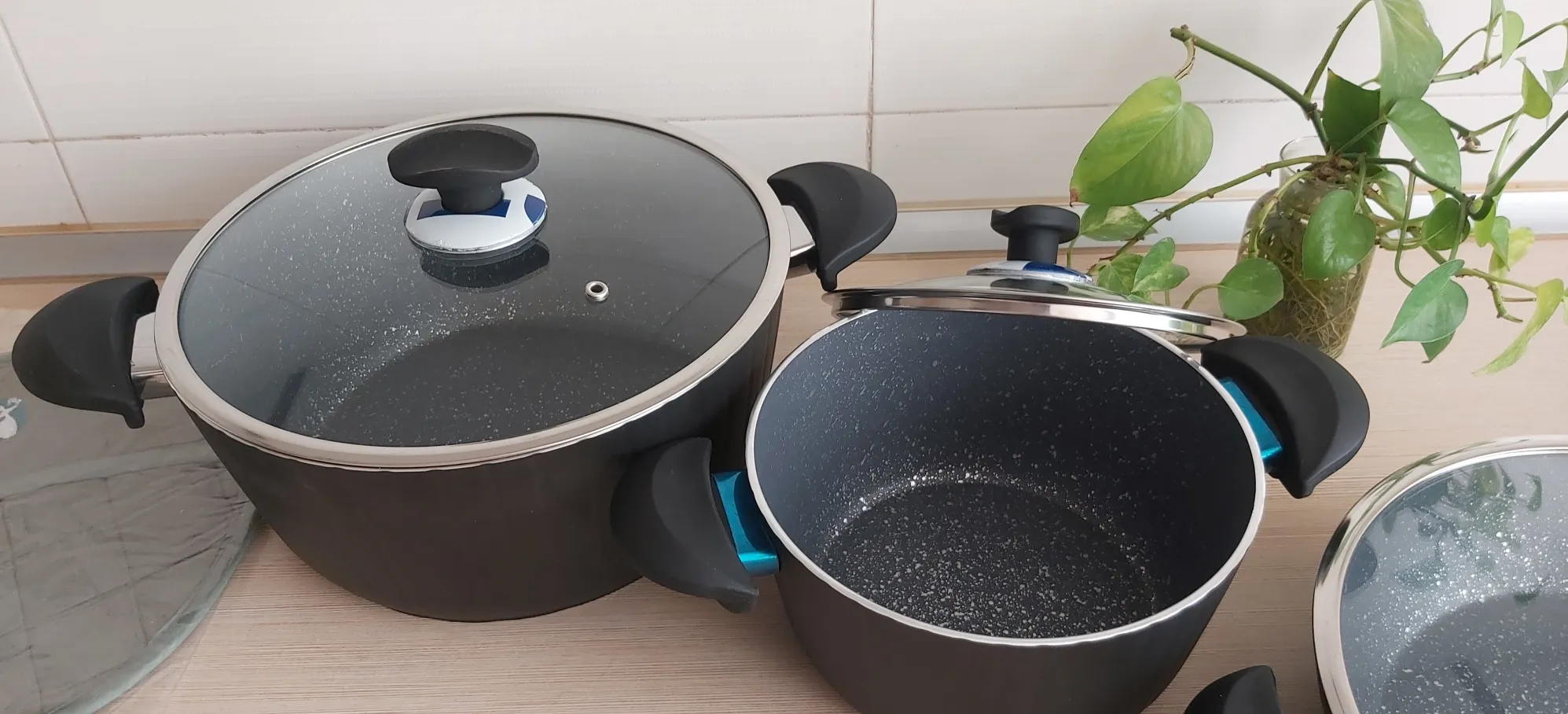 - ⬤ پوشش نچسب : وجود پوشش نچسب در تابهها و قابلمهها از چسبیدن غذا جلوگیری میکند. خریداران به کیفیت پوشش نچسب اشاره کردهاند و برخی از آنها از نچسب نبودن برخی مدلها و نیاز به استفاده از روغن زیاد ناراضی بودند.
