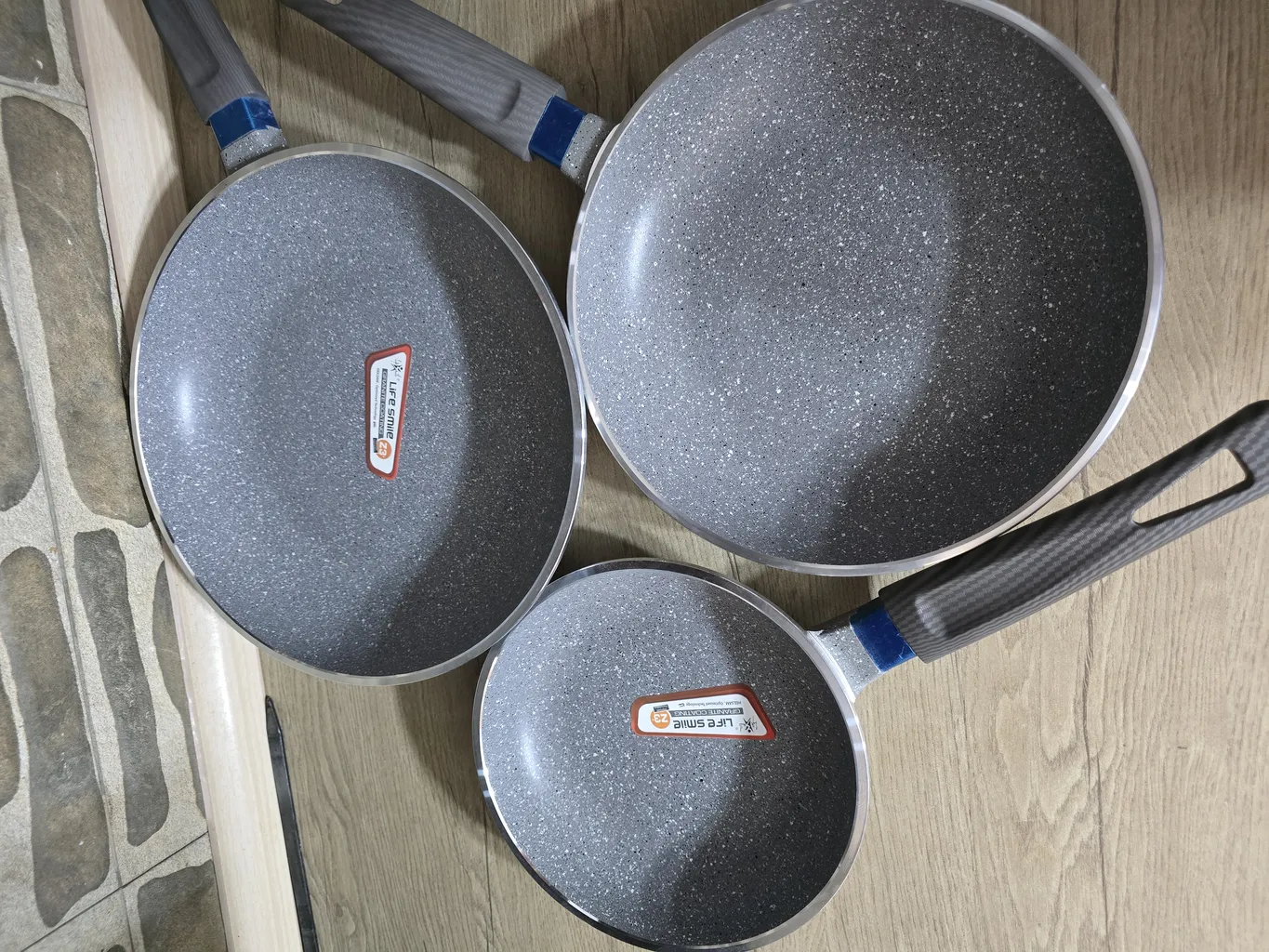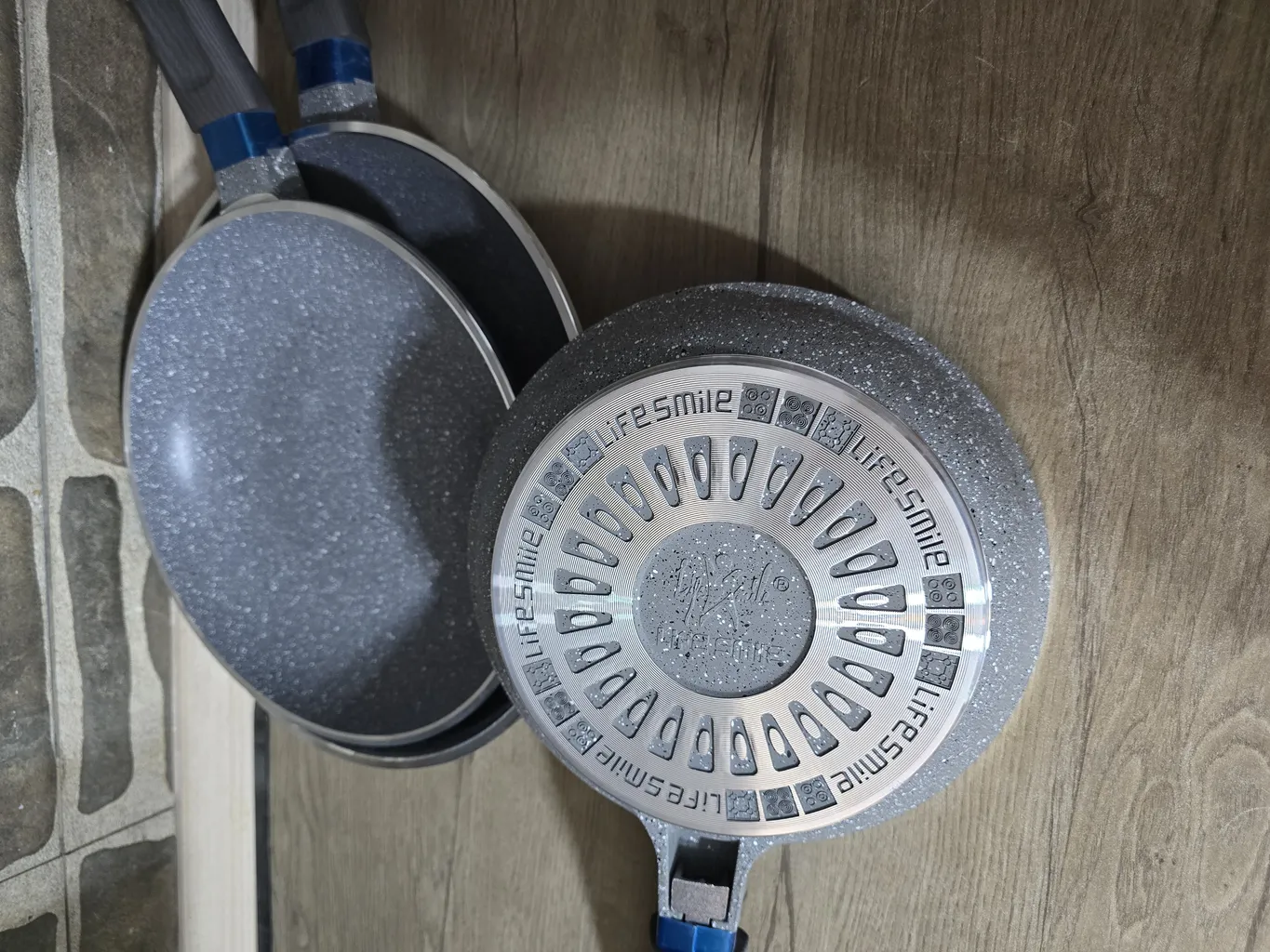 - ⬤ جنس رویه و بدنه : جنس رویه و بدنه باید با کیفیت و مقاوم باشد. خریداران به جنسهای مختلفی مانند استیل، چدن، آلومینیوم، گرانیت و سرامیک اشاره کردهاند. هر کدام از این جنسها ویژگیهای خاص خود را دارند که میتواند بر انتخاب شما تأثیر بگذارد.