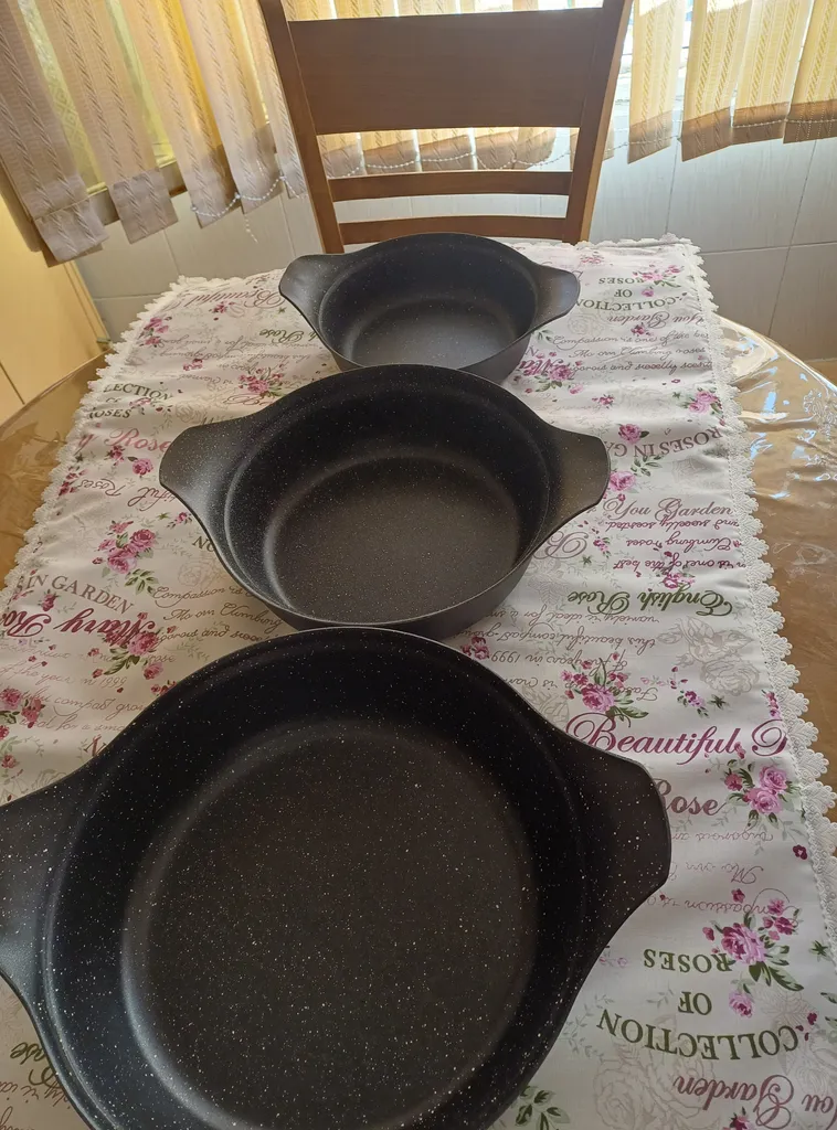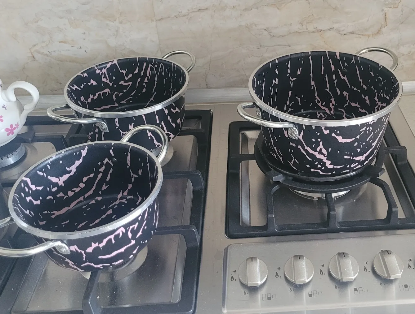 - ⬤ چدن : چدن حرارت را به خوبی نگه میدارد و برای پخت و پز طولانی مدت مناسب است. خریداران به کیفیت بالای چدن و توزیع یکنواخت حرارت اشاره کردهاند. اما برخی از آنها از وزن سنگین و نیاز به مراقبت بیشتر برای جلوگیری از زنگزدگی ناراضی بودند.