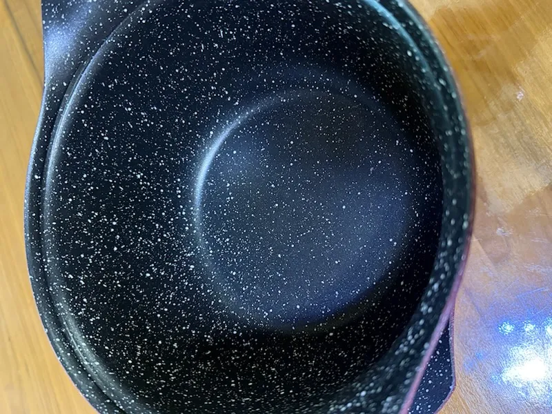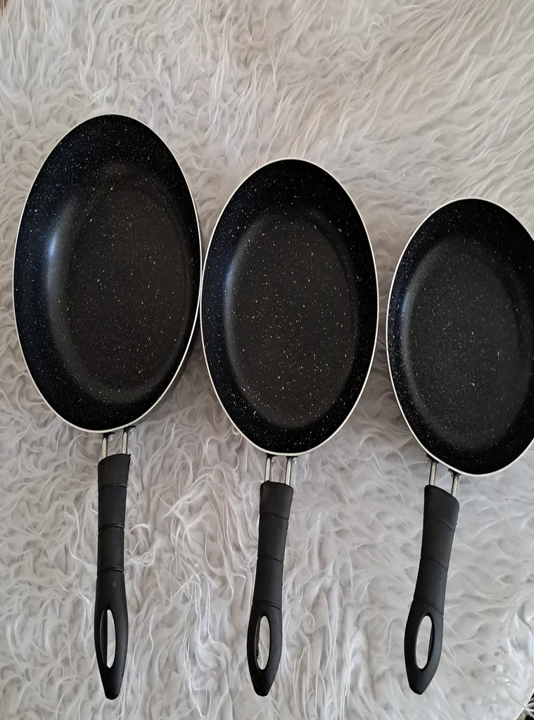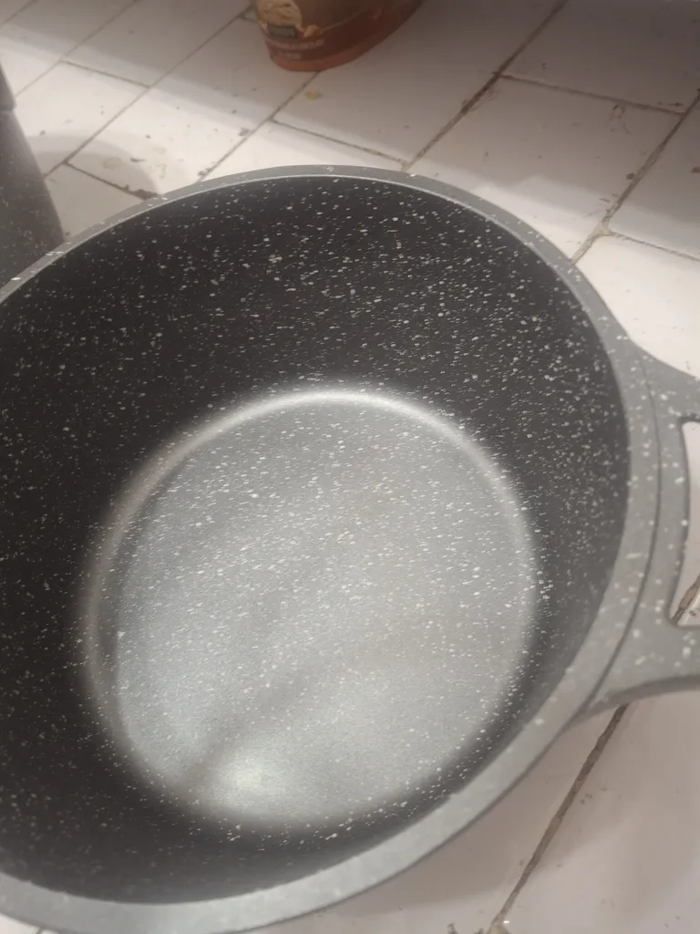 - ⬤ گرانیت : گرانیت به عنوان یک جنس با کیفیت و نچسب شناخته میشود. خریداران به زیبایی و مقاومت گرانیت در برابر خراش و حرارت اشاره کردهاند. اما برخی از آنها از عدم نچسب بودن برخی مدلها و احتمال ترک خوردن آن ناراضی بودند.