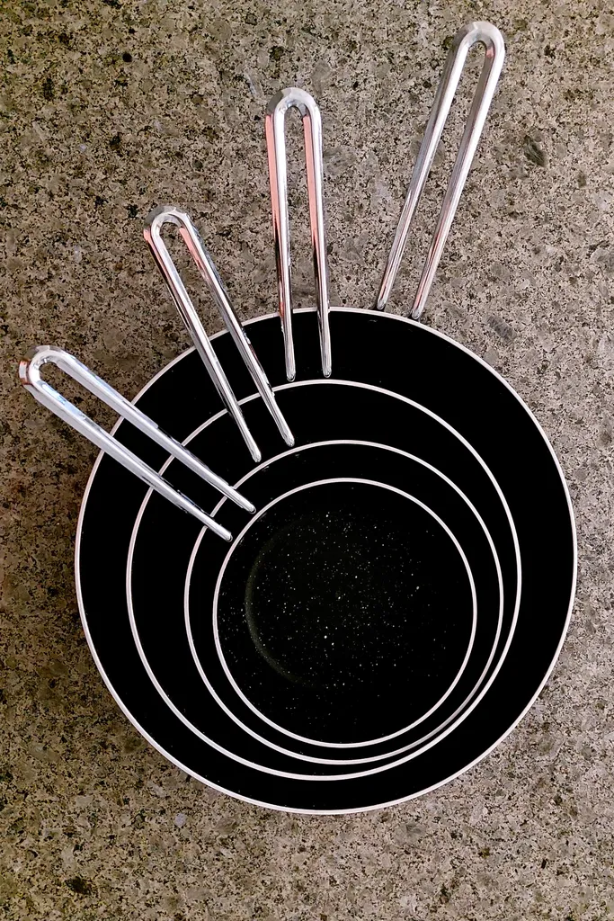 ⬤ استیل ضد زنگ : استیل ضد زنگ یکی از محبوبترین جنسها برای سرویسهای پخت و پز است. این جنس مقاوم در برابر زنگزدگی و خوردگی است و به راحتی تمیز میشود. خریداران به دوام و زیبایی استیل اشاره کردهاند، اما برخی از آنها از سنگینی و قیمت بالای آن ناراضی بودند.