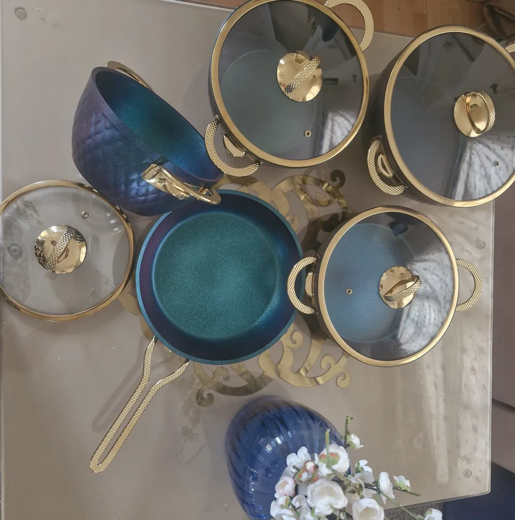 - ⬤ تنوع رنگ : خریداران به تنوع رنگهای موجود در سرویسهای پخت و پز اشاره کردهاند. وجود رنگهای مختلف مانند مشکی، سفید، قرمز، آبی، سبز و رنگهای متالیک به خریداران این امکان را میدهد که با توجه به دکوراسیون آشپزخانه خود، انتخاب مناسبی داشته باشند.