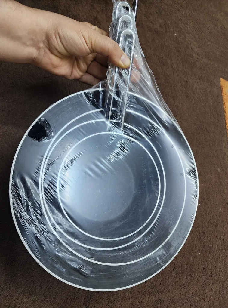 اول بگم چون وقت مرجوع نداشتم نگه داشتم چون کیفیت دسته ها و دسته در قابلمه ها انگار از پلاستیک بازیافتی درست شده و برش خیلی بدی هم داره عکس میذارم ببینید