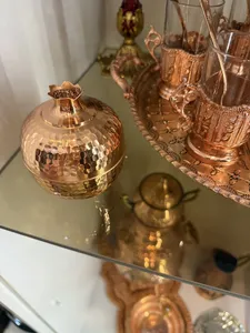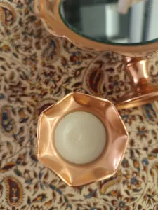 - ⬤ قندان مسی : قندانهای مسی به خاطر طراحی خاص و زیباییشان مورد توجه قرار دارند. این محصولات معمولاً برای سرو شیرینی و قند در مهمانیها استفاده میشوند و به خاطر زیبایی و جذابیت خود، میتوانند به عنوان دکوری نیز مورد استفاده قرار گیرند. خریداران از کیفیت و زیبایی آنها تعریف کردهاند، اما برخی به تقلبی بودن برخی مدلها و عدم کیفیت در برخی از محصولات انتقاد کردهاند. همچنین، نیاز به مراقبت و تمیزکاری منظم برای حفظ درخشش و جلوگیری از تغییر رنگ نیز از نکات مهمی است که خریداران به آن اشاره کردهاند.