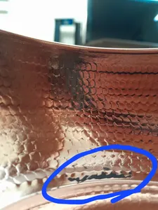 - ⬤ یکدستی رنگ : یکدستی در رنگآمیزی محصولات مسی از اهمیت بالایی برخوردار است؛ خریداران به این موضوع توجه دارند و از محصولاتی که دارای رنگهای ناهمگون هستند، ناراضی میشوند.