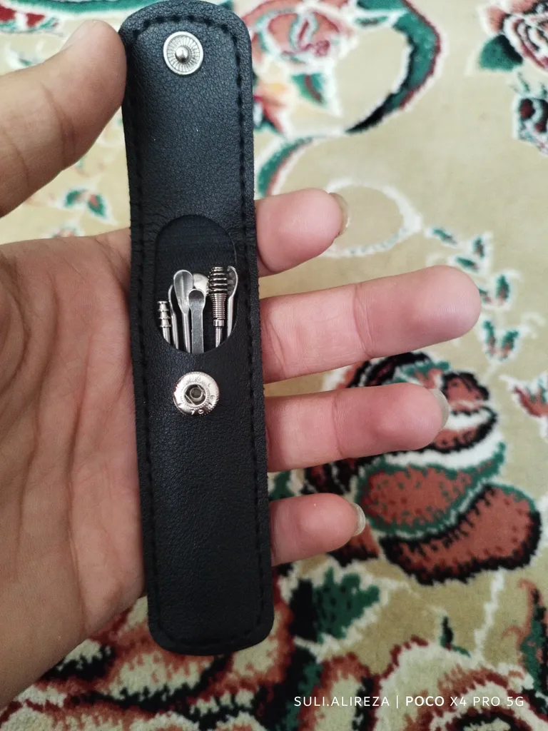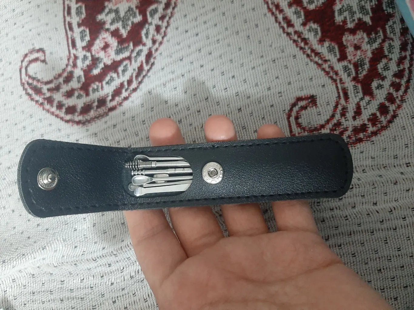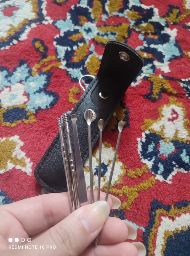 مهسا شادنائی : نظافت گوش ؛ قبلا یک مدل دیگه از دیجی کالا خریده بودم که جعبه پلاستیکی داشت به جای کیف چرمی، اون جنسش بهتر بود و سنگین تر بودن ، اینکار حس میکنم رنگش بره، خطای سیاه داره روش