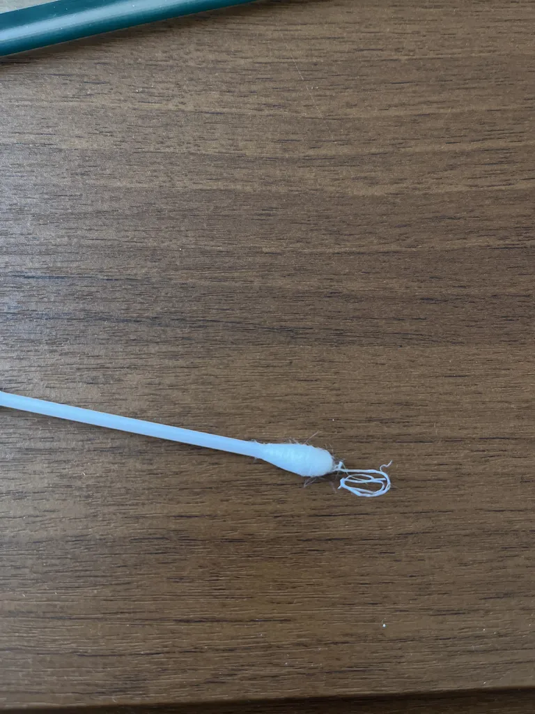 بعدش هم با گوش پاک کن پنبه ایی تمیز کردم داخلشو که خیلی زدی کمی روی گوش پاک کن اومد چون خوب تمیز شده بود